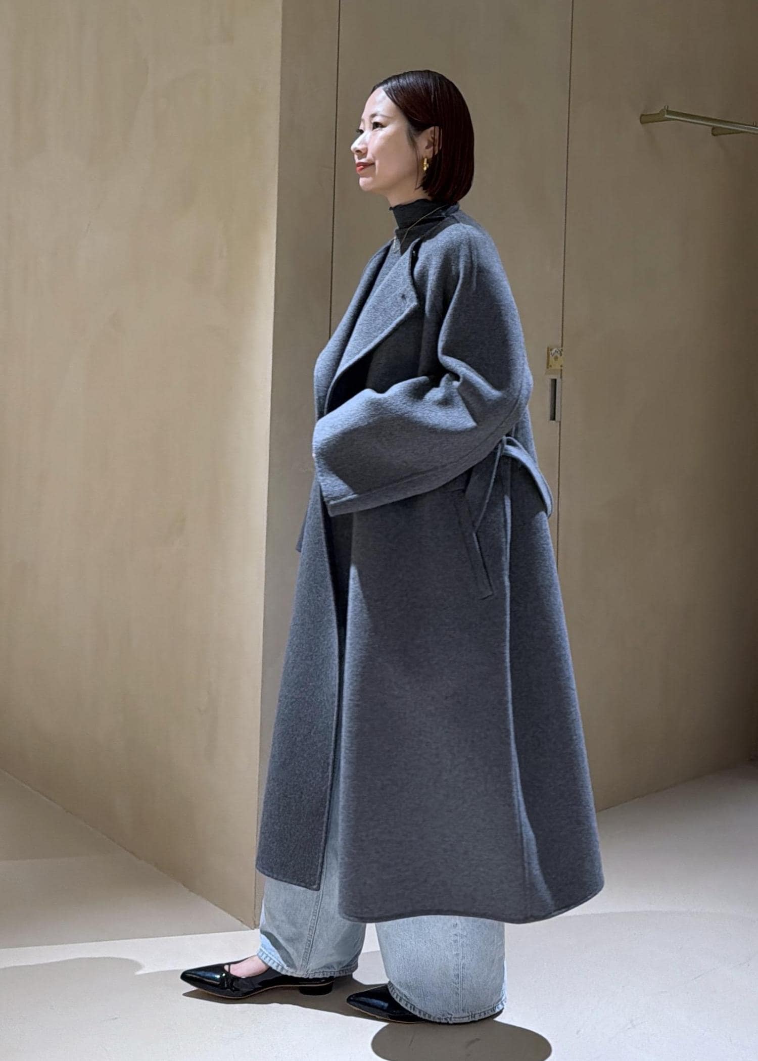 ROPÉ SELECT【一部店舗限定】【REALM(レルム)】DOUBLE-FACED LONG COAT|ロングコートチャコール / 38¥181,500レビュー161cmで38サイズを着用。