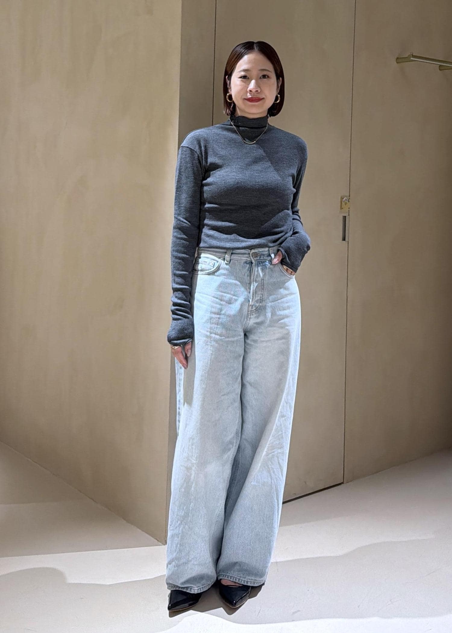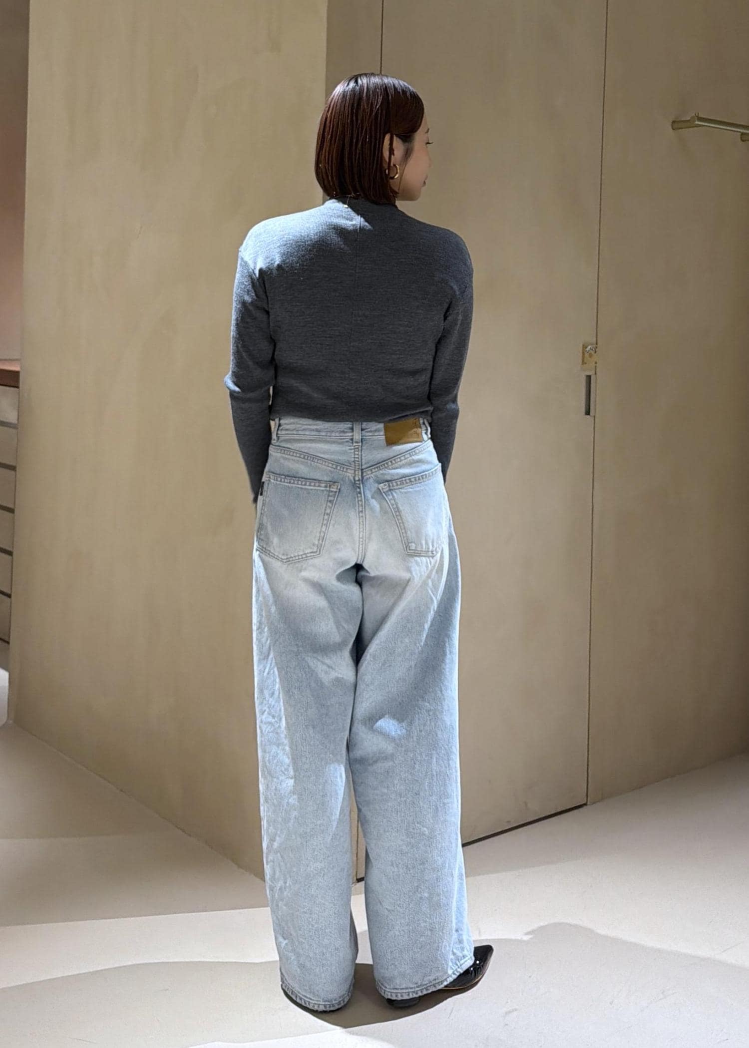 ワイドデニムですが腰まわりスッキリと見え1本持っていたらシーズンレスで履けるデニムです!
