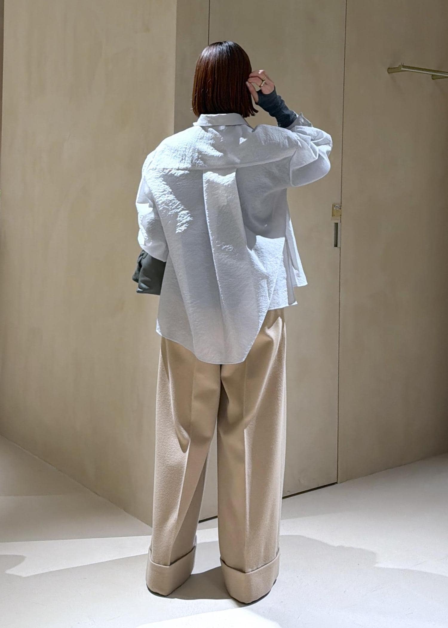 ROPÉ SELECT【一部店舗限定】【REALM(レルム)】DOUBLE HEM PANTS|パンツベージュ / 38¥52,800レビューウエストは大きく感じましたが丈の長さが欲しかったため38サイズを選びました。160cm以上の方だとフラッとシューズでもぎりぎり引きずらない丈感です。