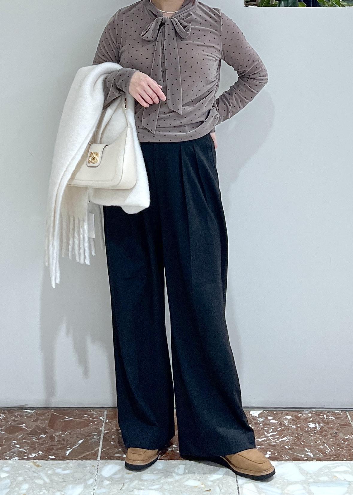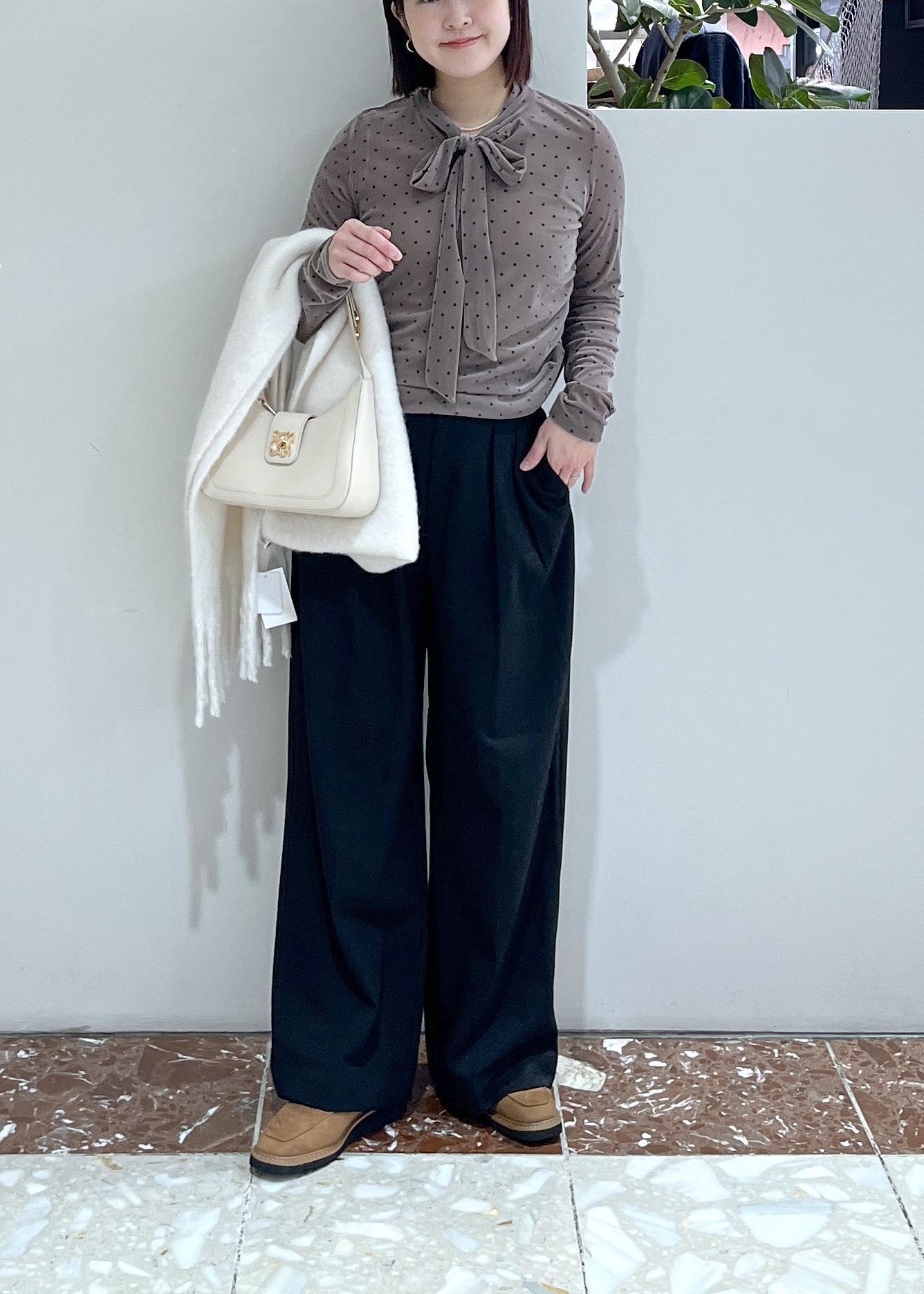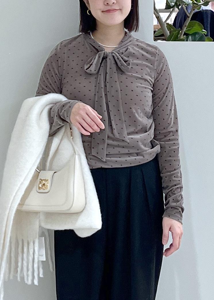VISベロアボウタイドットカットソーベージュ系 / F¥4,389レビュー160cm着用でジャストウエストです。身柄もジャストサイズなのでジャケットに合わせてもオススメです。ドット柄も小さめなので大人カジュアルにぴったりなアイテムです。ベロア生地なので寒い冬にもぴったり。ウール素材のカーディガンやニットに合わせてもオススメです!