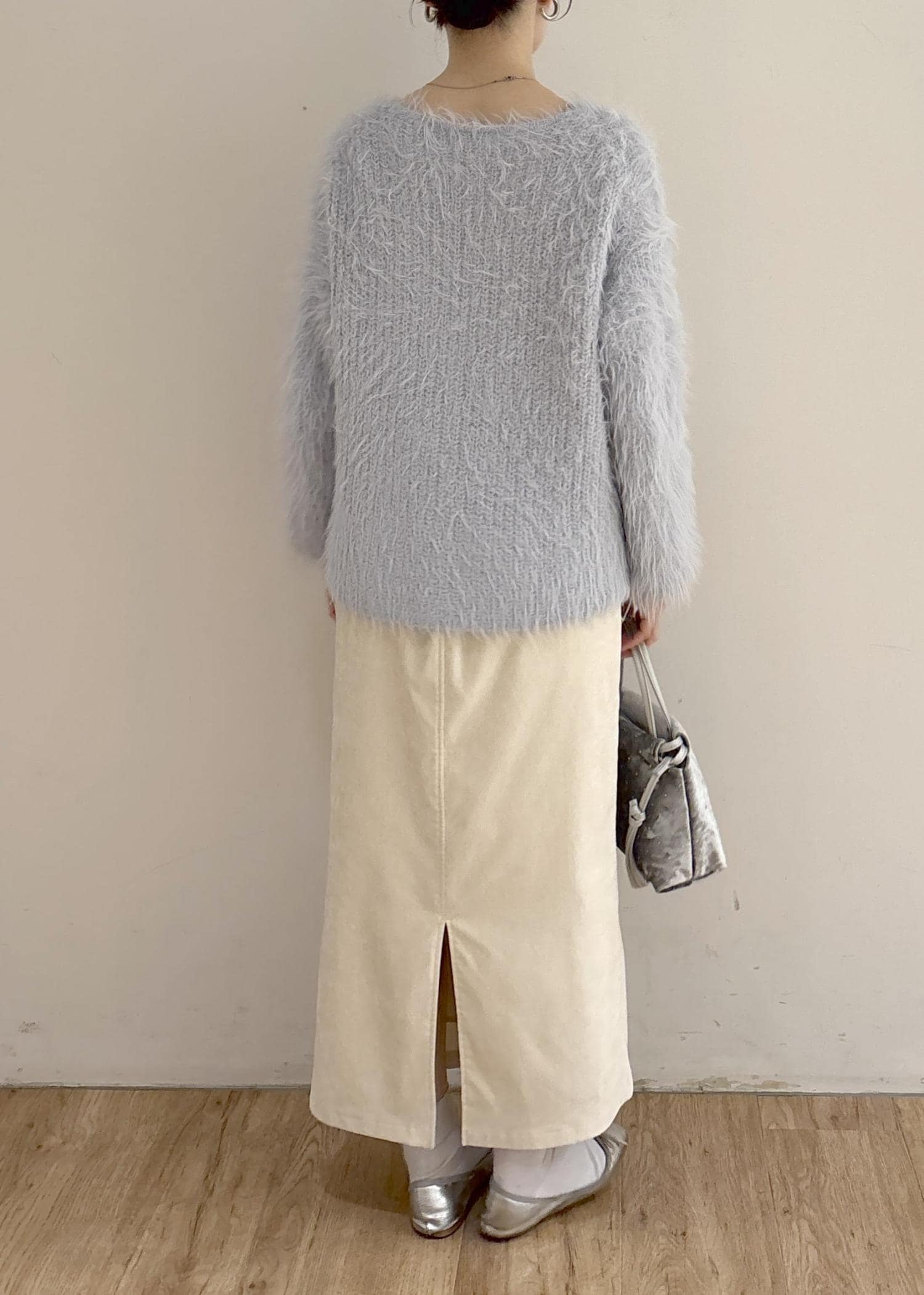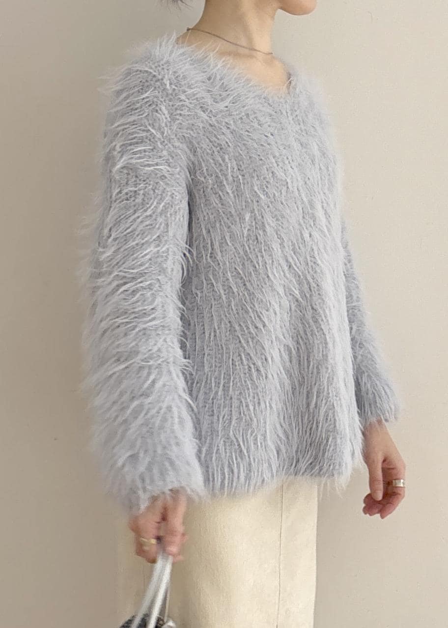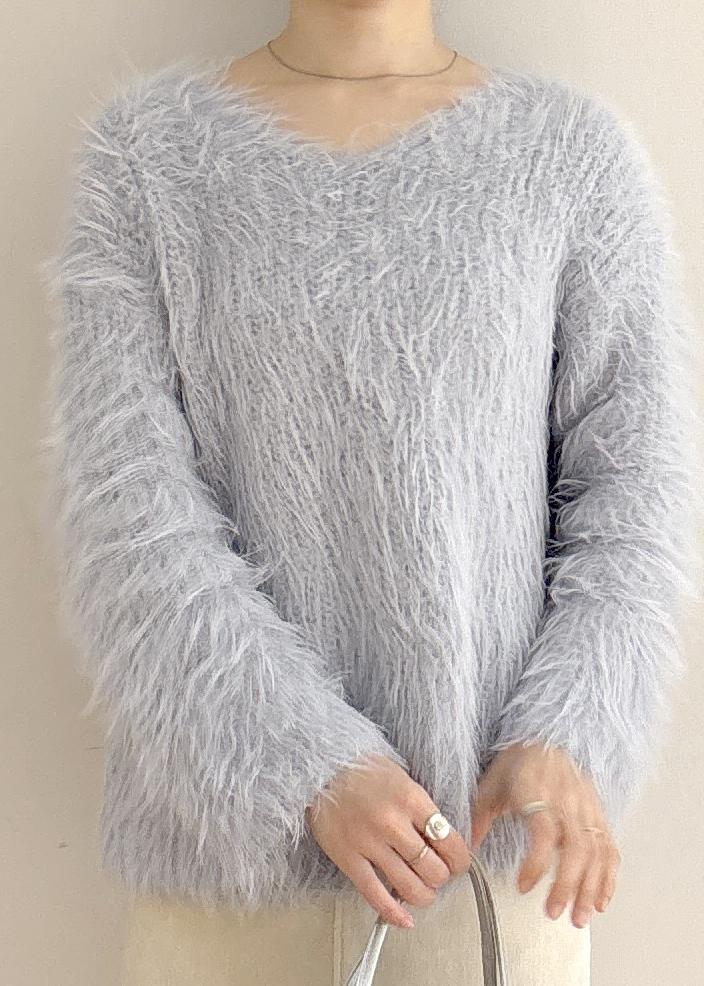 ROPÉ PICNICフェザーVネックニットサックス / F¥4,445レビュー毛足の長さが可愛いニットです。素肌に触れてもチクチクしません。ヒップにかぶる丈でした。