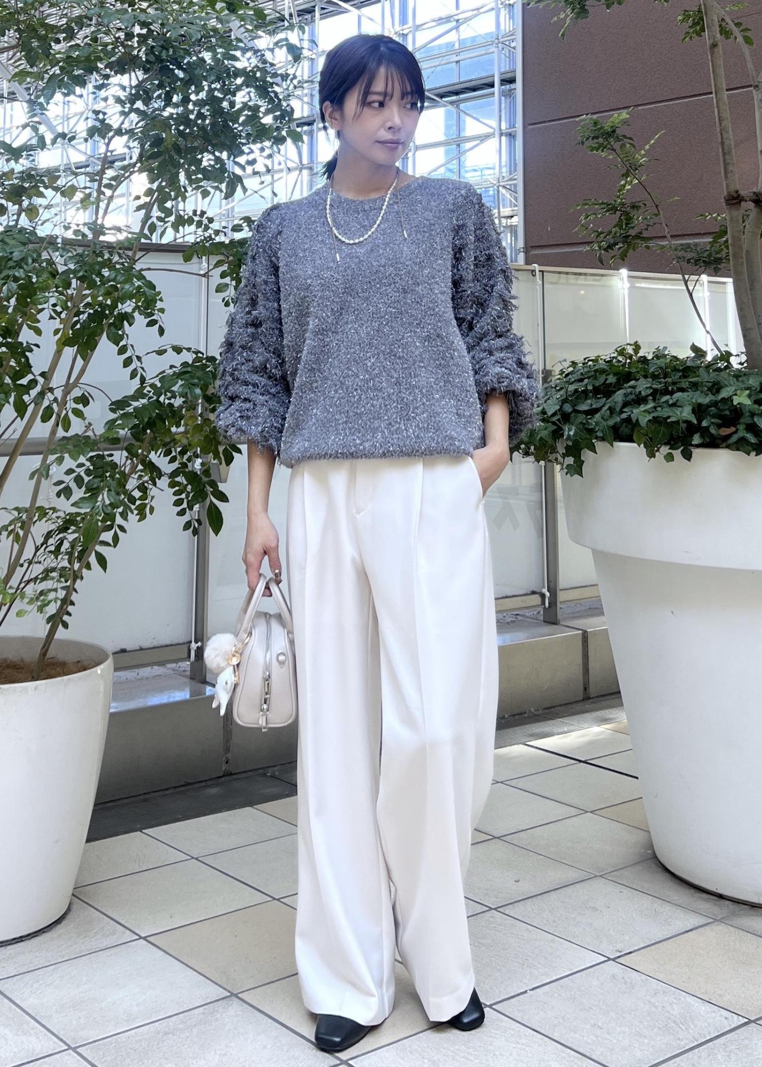 ラメ糸が華やかなニットはお出かけスタイルにおすすめ。
