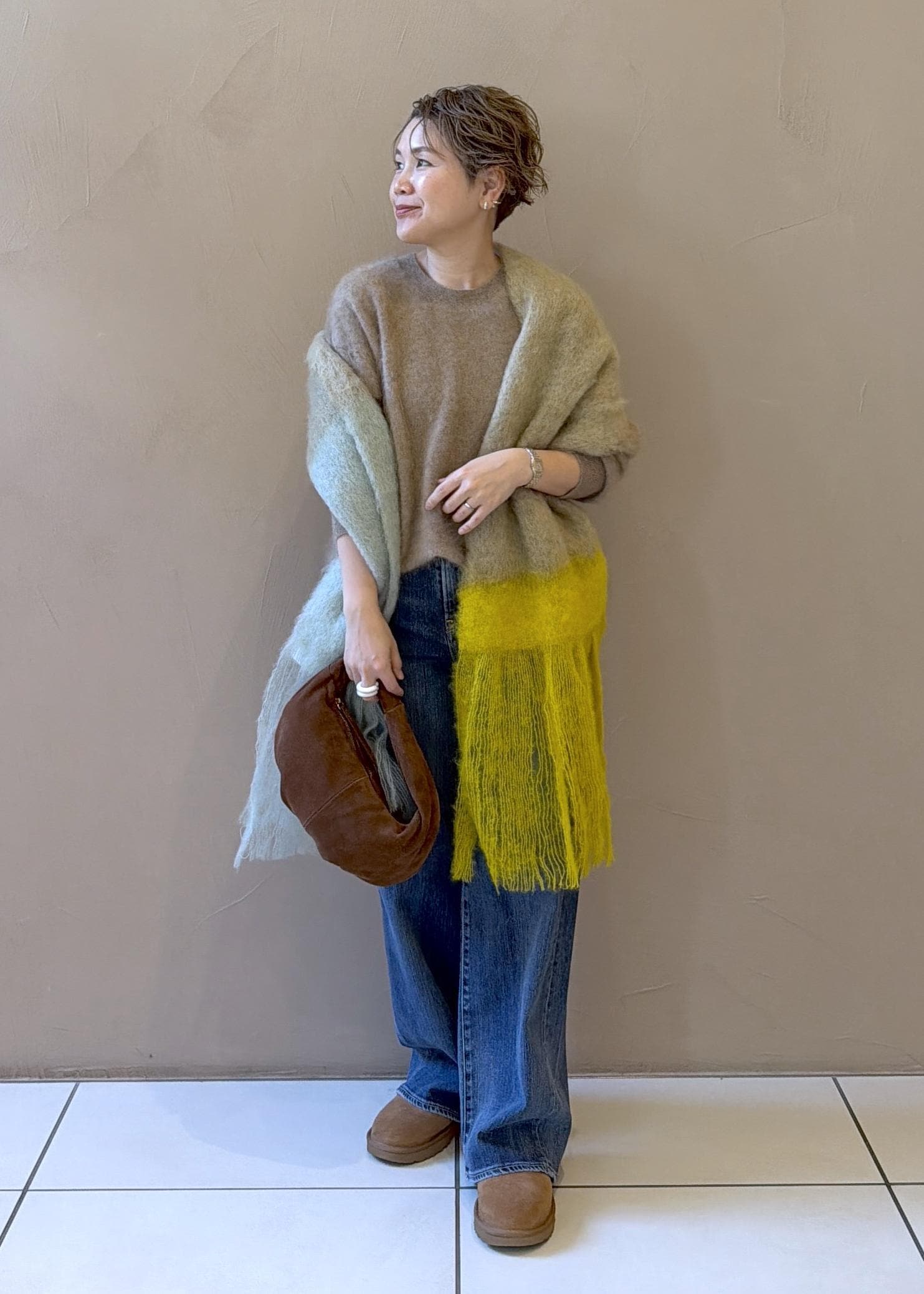 滑らかで落ち感があるので、オーバーサイズでも程よく身体に馴染んでくれて、小柄でも着られている感が出にくいのが嬉しいポイント。 -