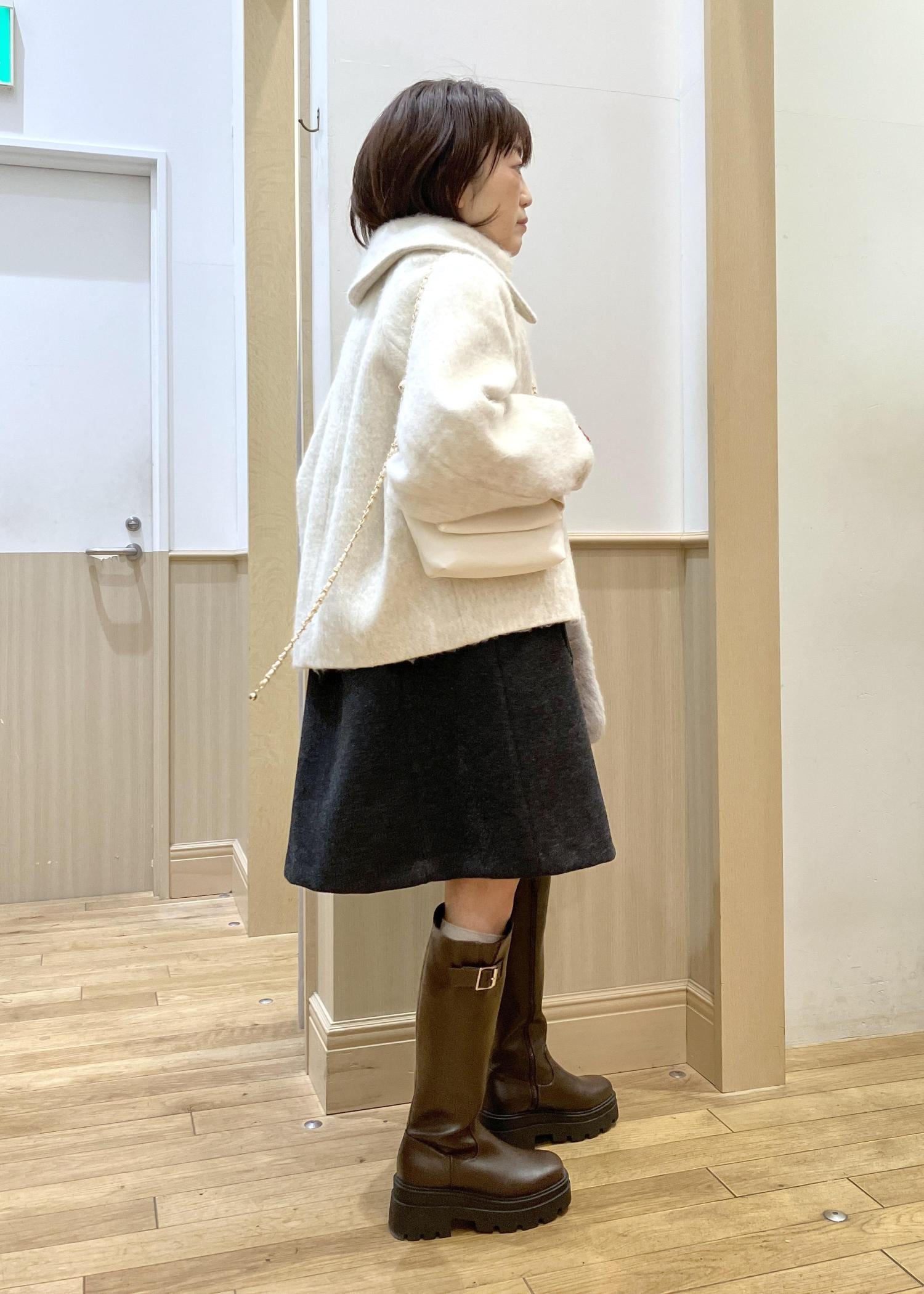 裾に向けて広がりのあるAラインなので足元が華奢見えして◎