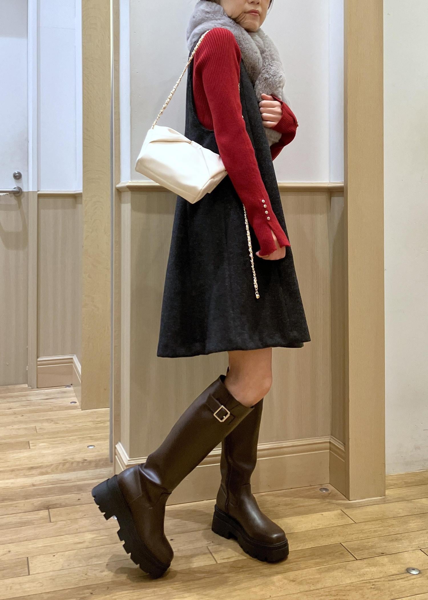 年末年始の帰省など移動距離が長い時はシワになりにくく、楽チンなワンピースstylingがオススメです。