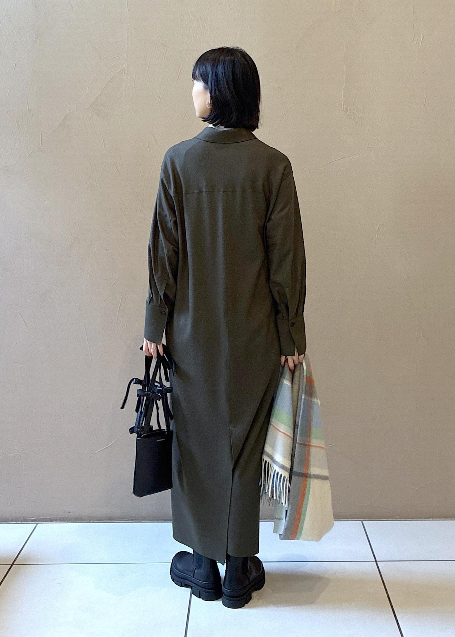 ウール地のシャツワンピースのご紹介。