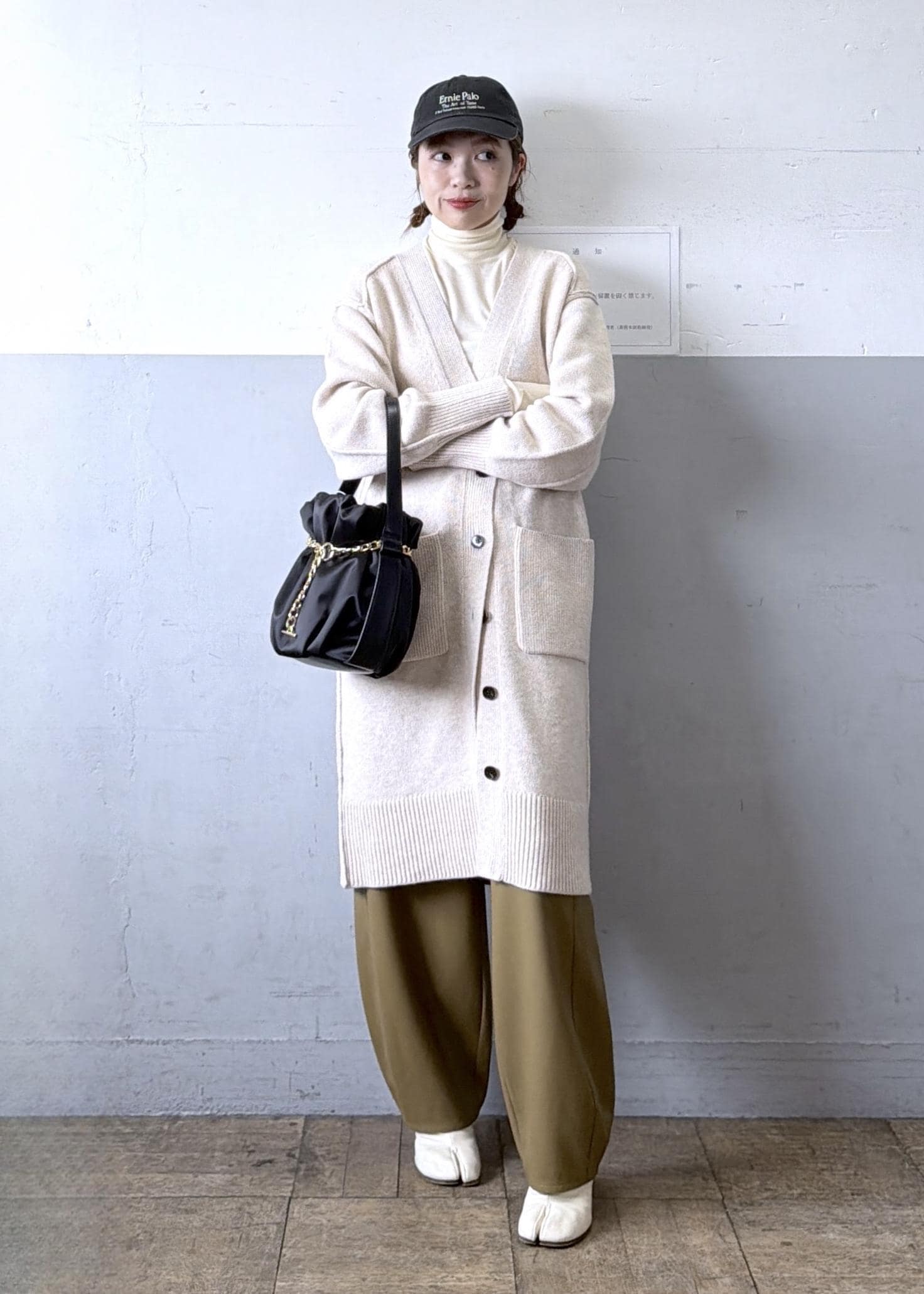 ヒップをしっかりカバーしてくれる着丈なので安心感があるものの、シルエットは着膨れないのが嬉しい。