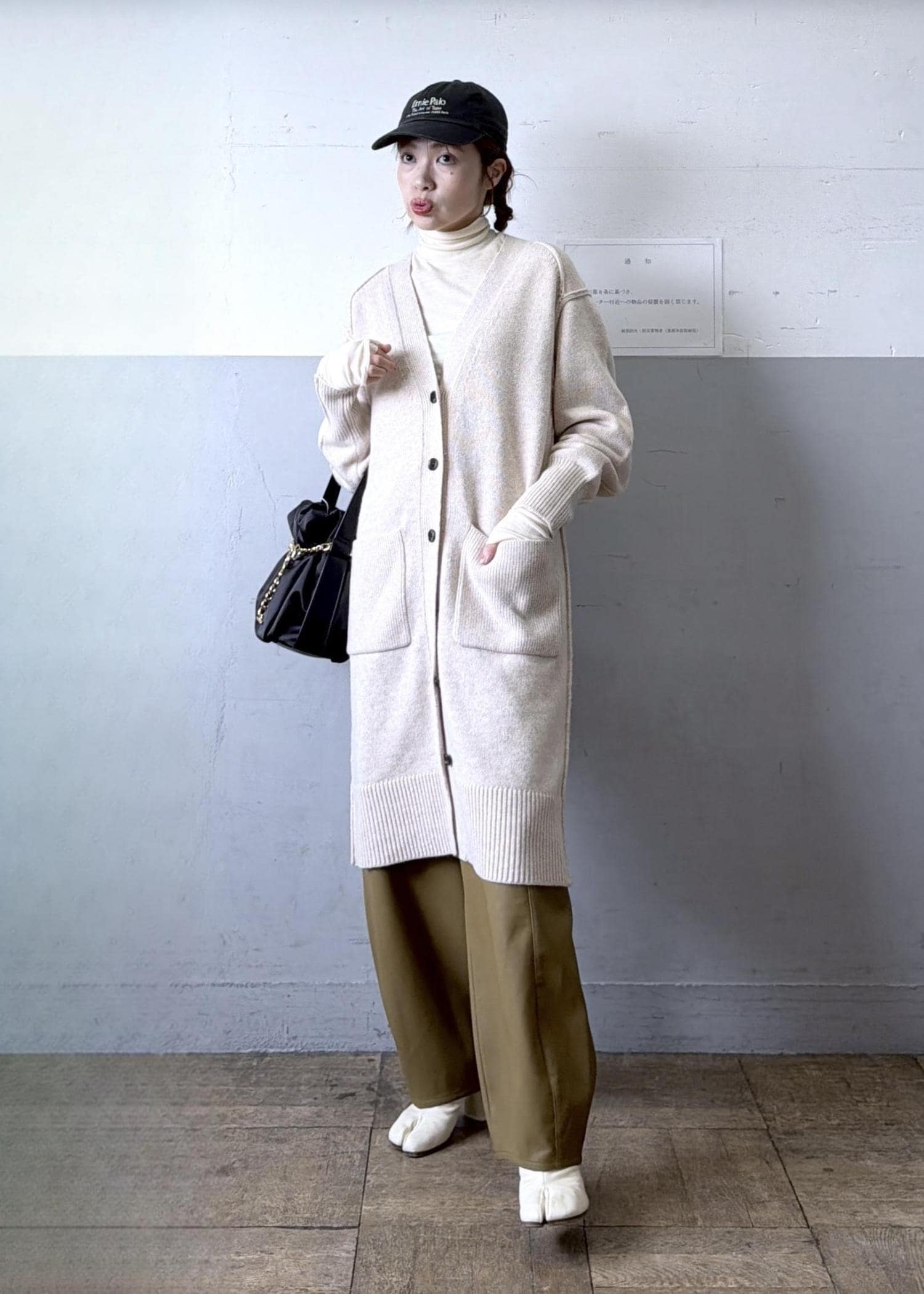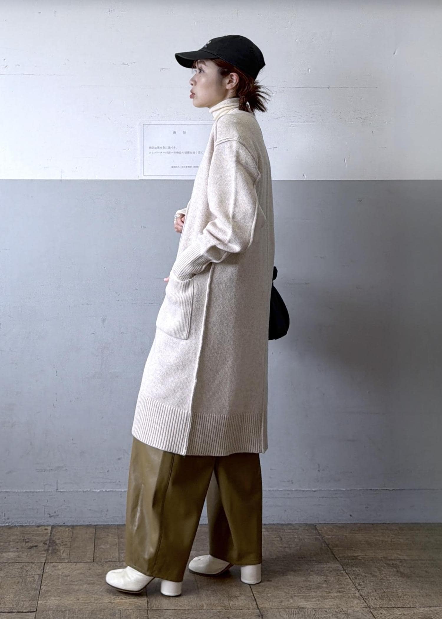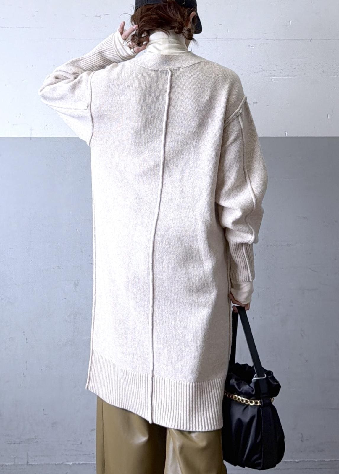 ゆるっとしたシルエットと着丈がポイントのカーディガンワンピース。