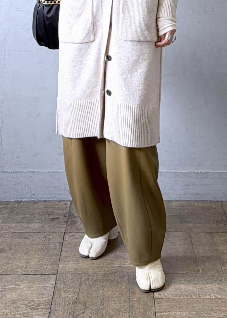 ゆるっと丸みのあるシルエットで、裾が絞れたシルエットなのでおしゃれ感のあるルーズさ。