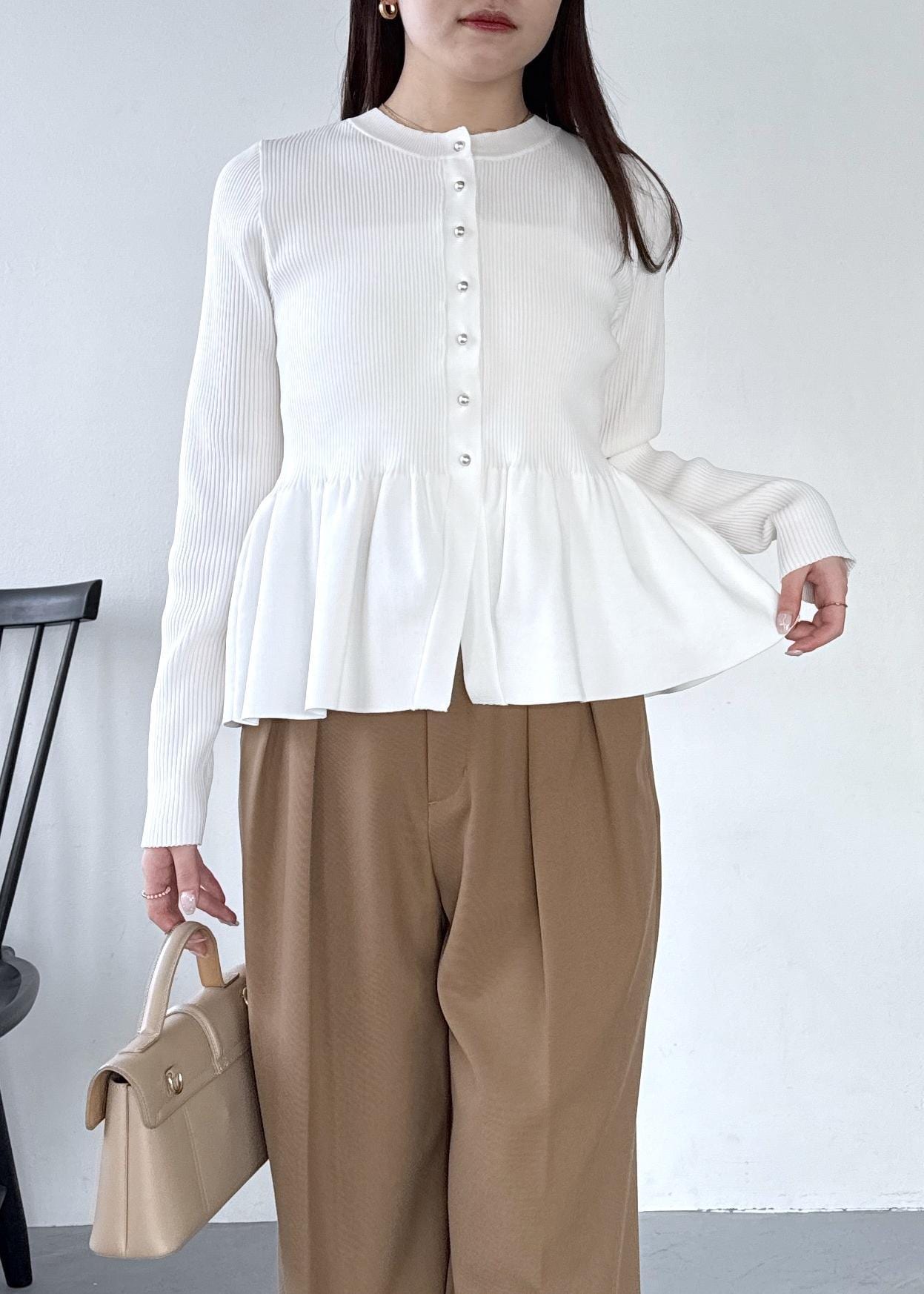NEW! 予約VISペプラムニットカーディガン/イージーケアホワイト / F¥5,929レビューチクチクしない素材感で、毛玉もなりにくいです!