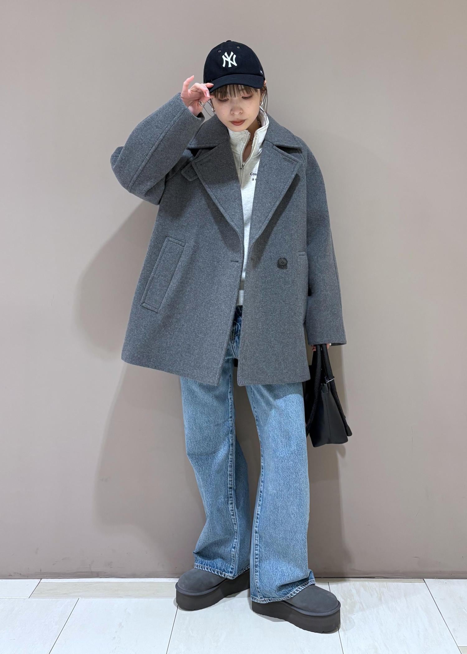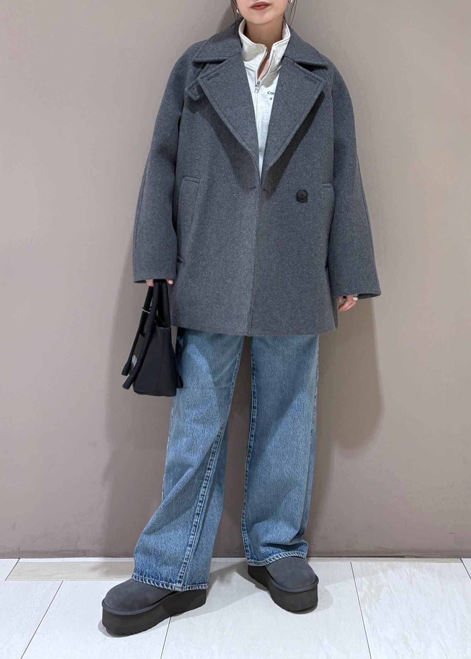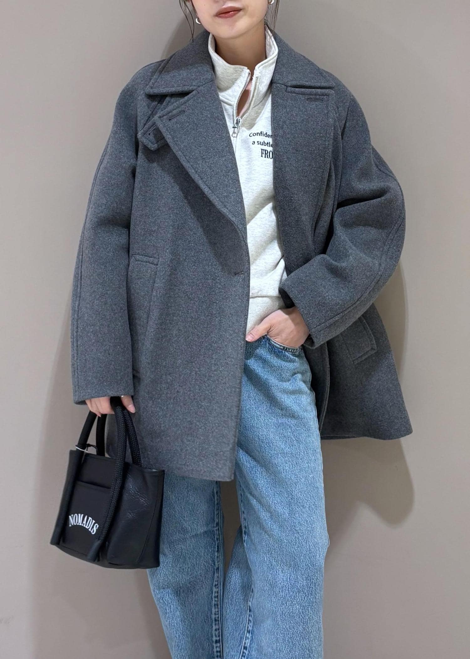 ADAM ET ROPÉ FEMMEウールボンディングミドルコートチャコール / F¥46,200レビュー162cm.フリーサイズ着用。