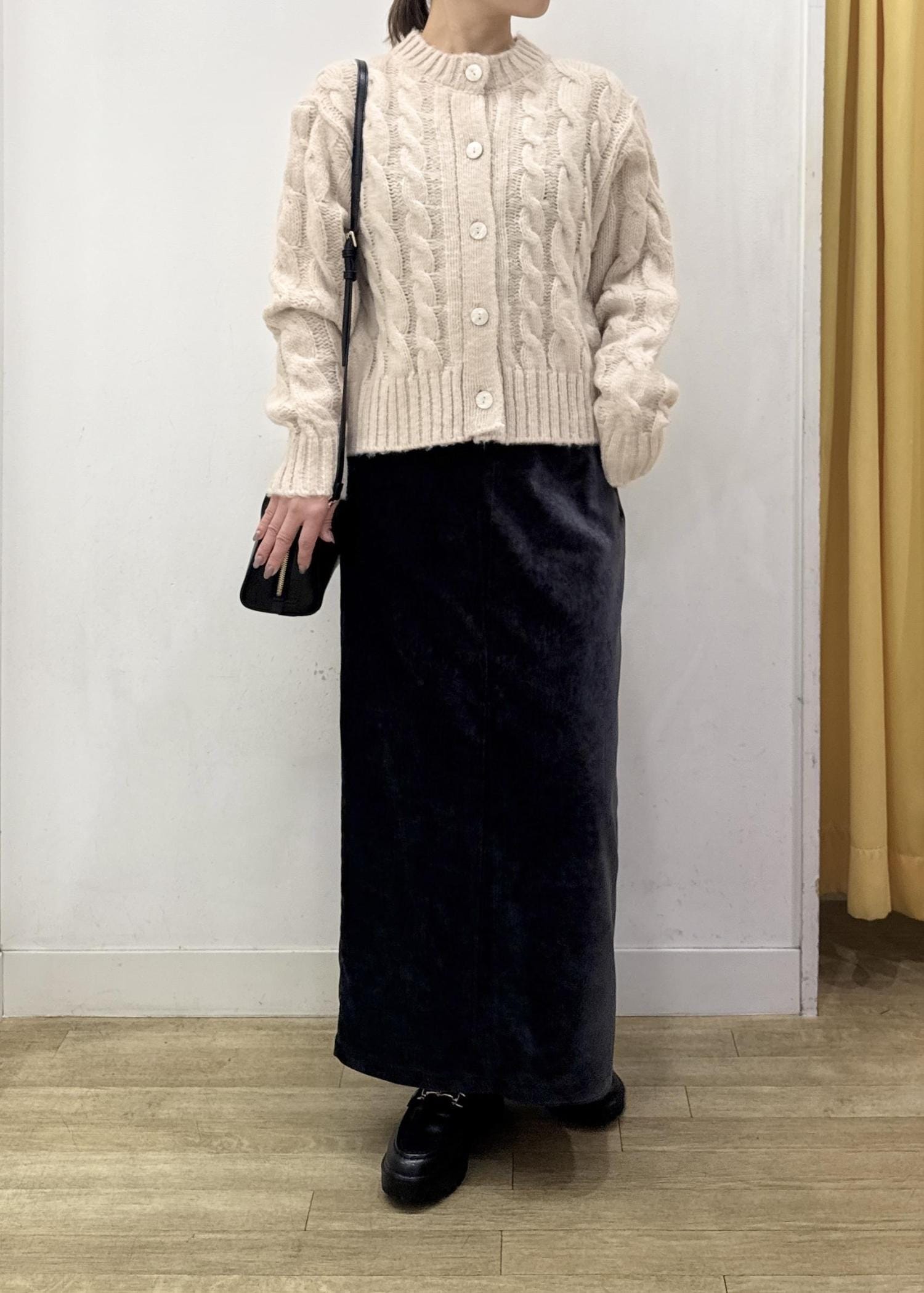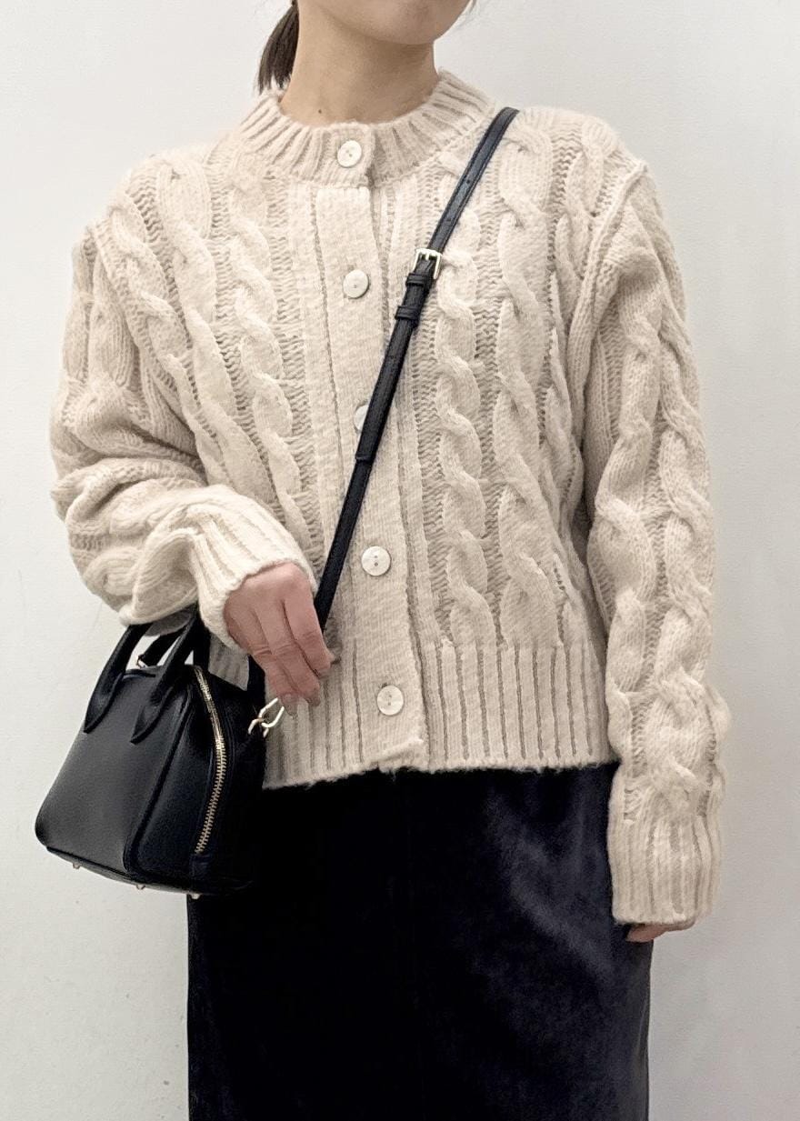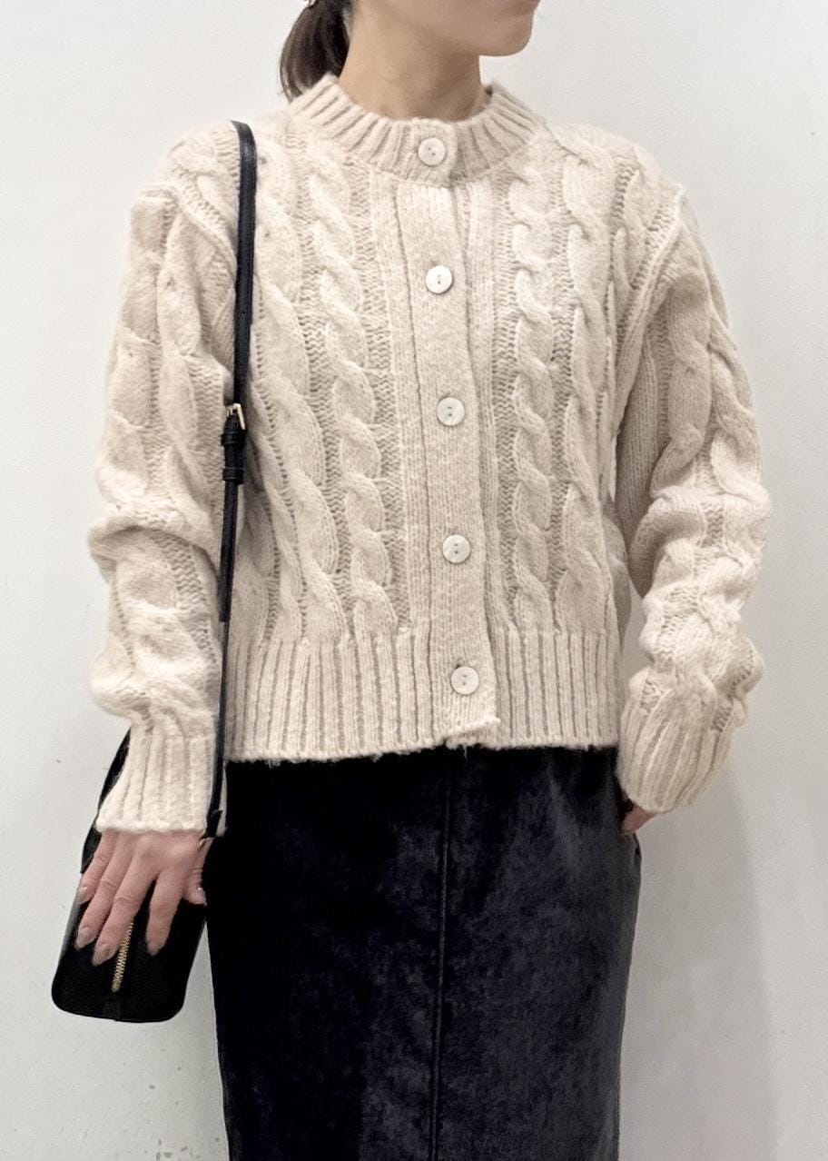 ケーブル編みが可愛いニットカーディガンは、閉めてニットプルオーバーとしても着られる着回し力のあるアイテム!
