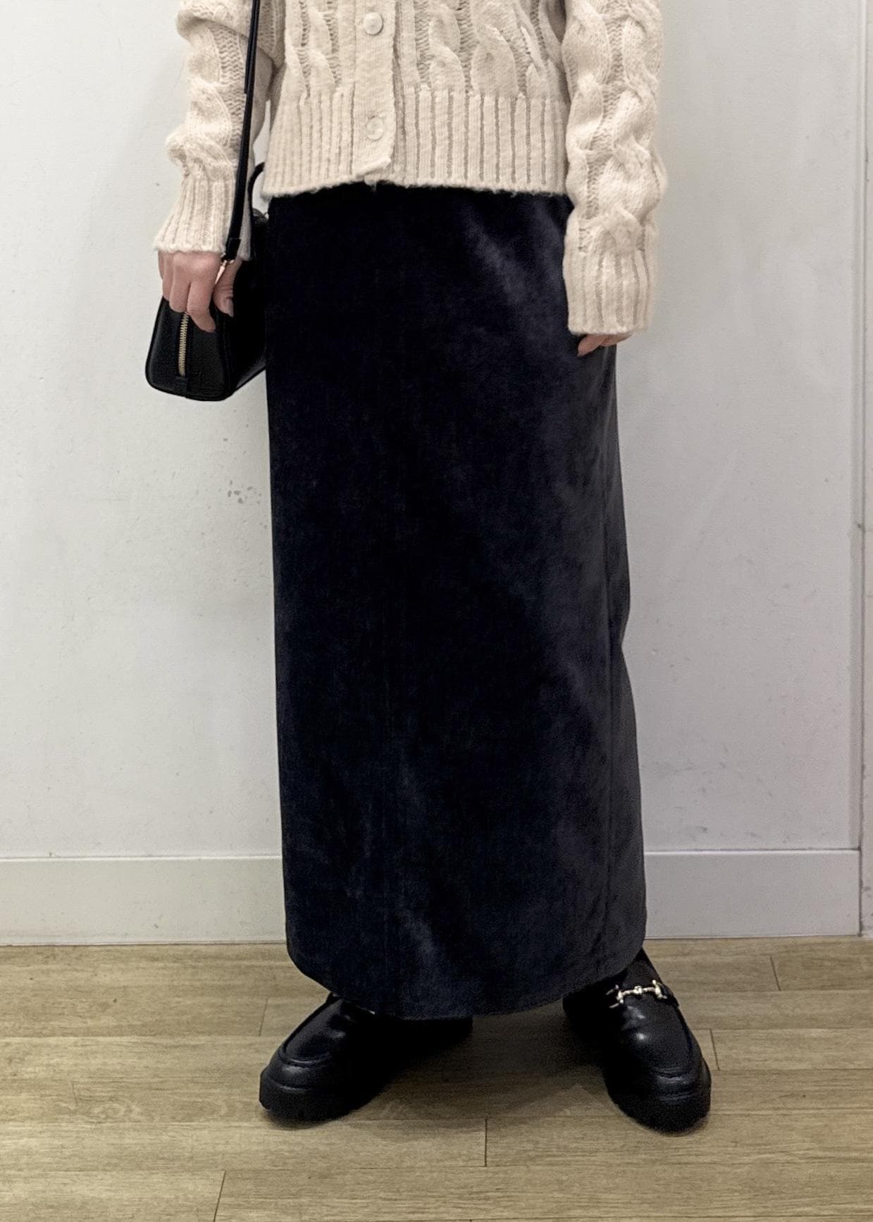 アイラインシルエットのスカートと合わせて、大人っぽく合わせるのがオススメ☺︎