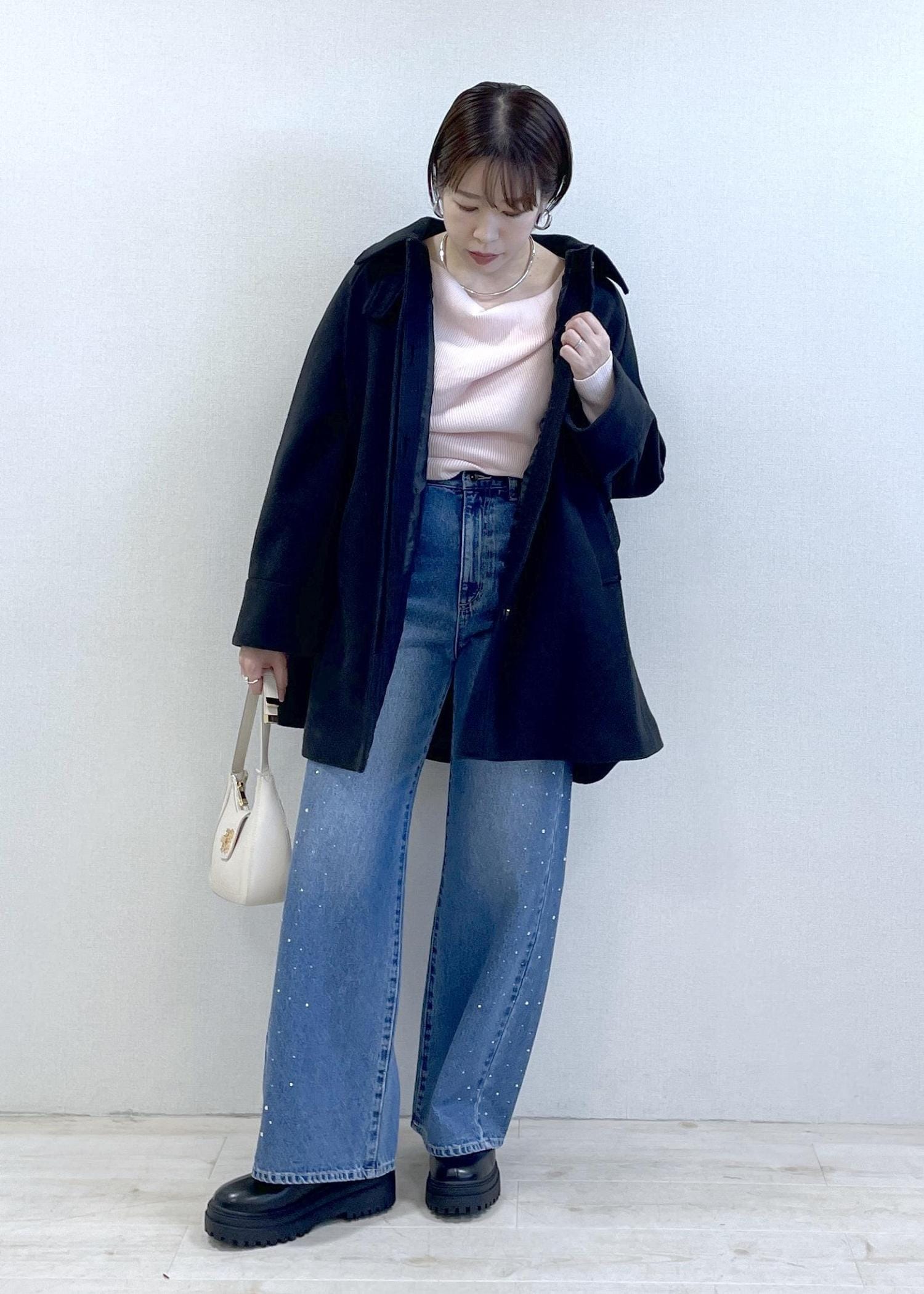 足がスラっと細く長く見え、ショート丈のボトムとも相性いいです。