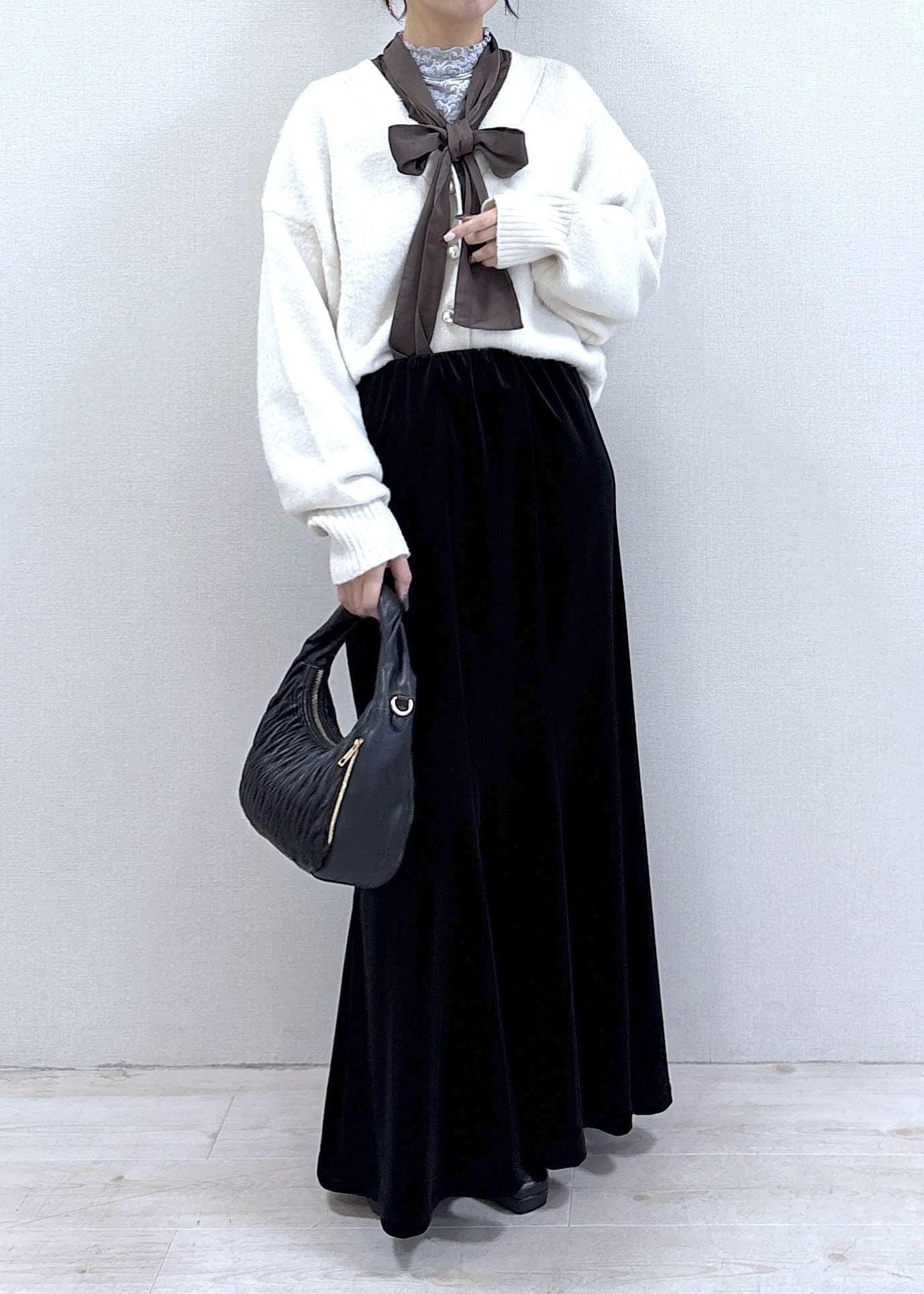 VISベロアナロースカートブラック / M¥6,589レビュー体のラインを拾わないのにすとんとまっすぐ落ちるシルエットで、下半身がすらっと見えて体型カバーできます◎