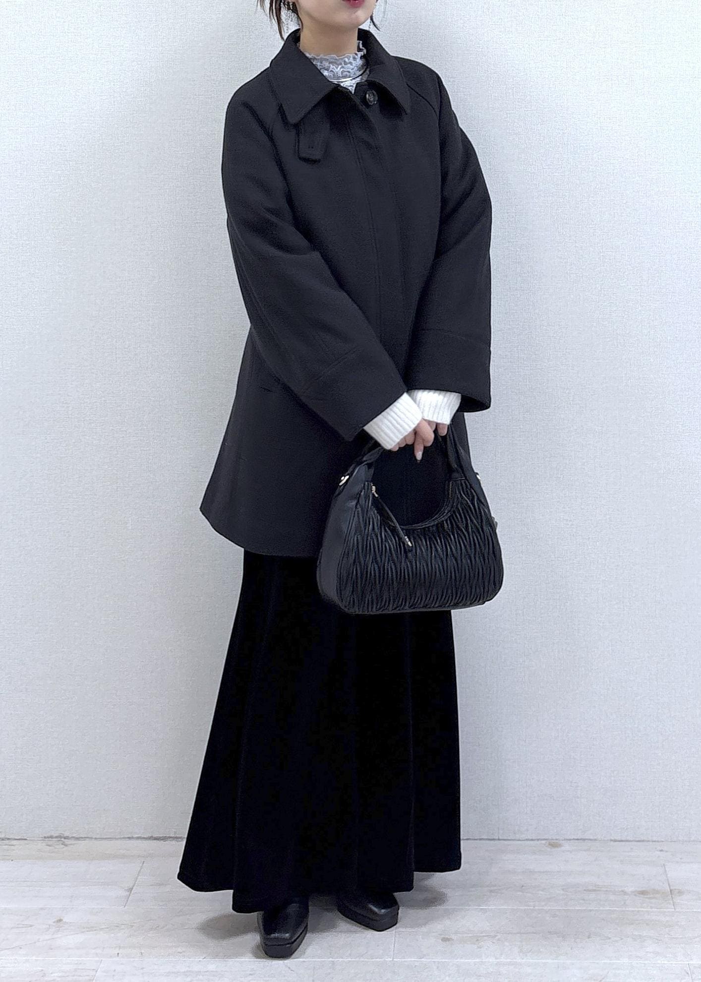 程よくゆとりのあるシルエットで、厚手のニットやワンピースの上からも羽織りやすい一着です。
