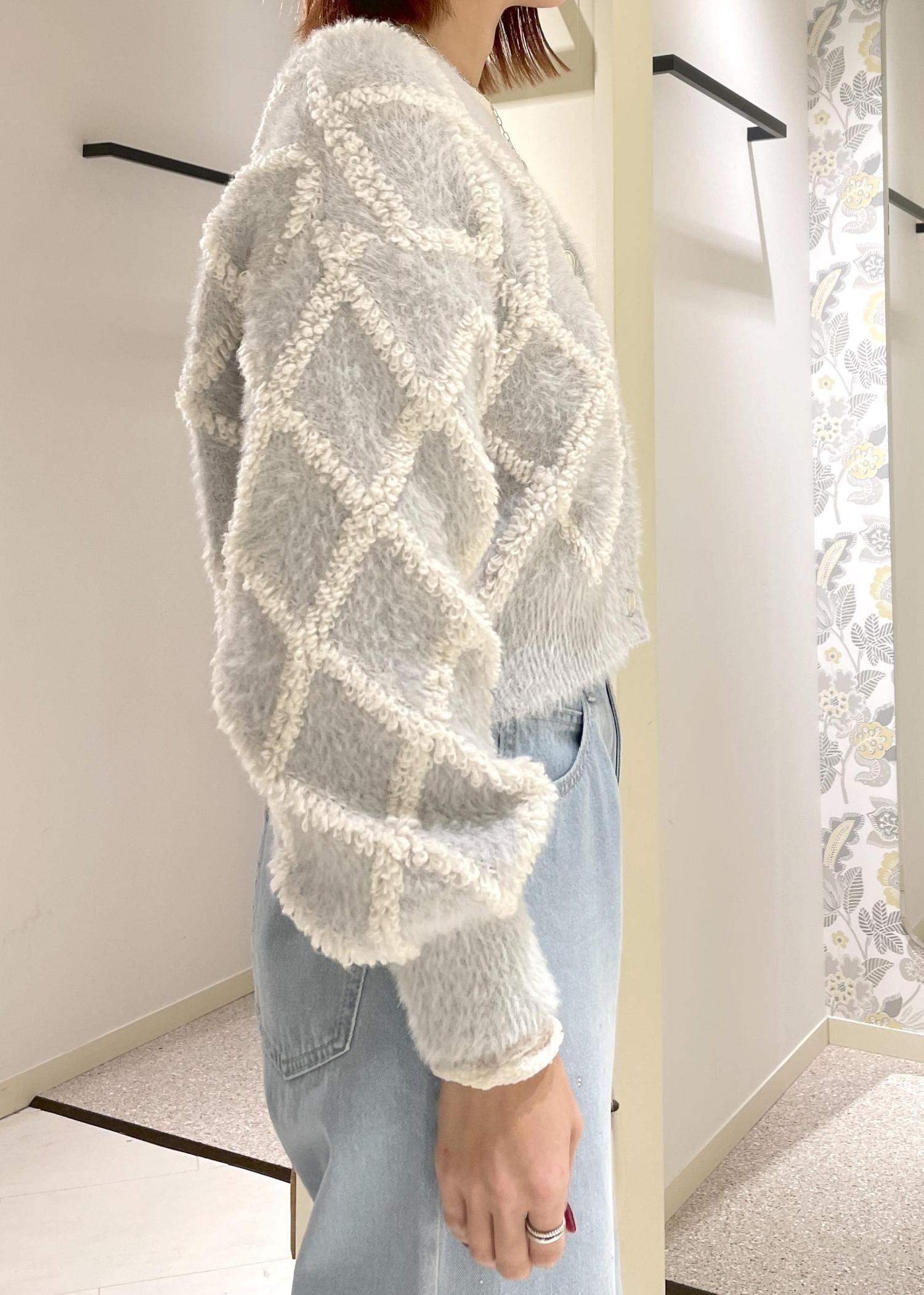 ダイヤチェック柄ループフェザーカーディガン