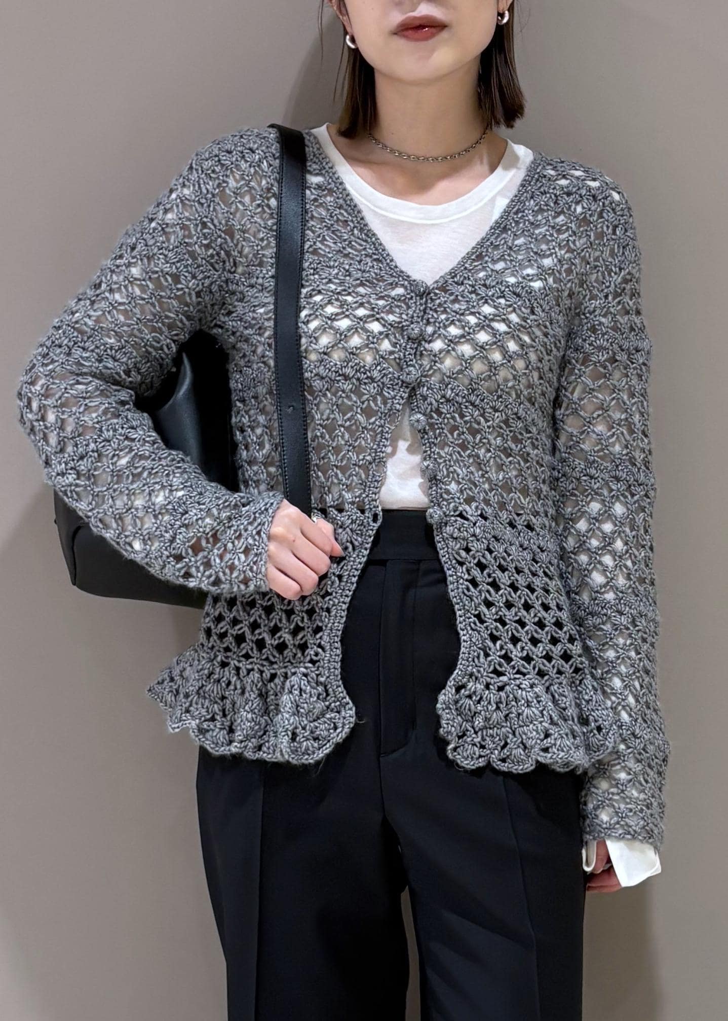 EMOELLE【EMOELLE】クロシェカーディガングレー / F¥15,840レビュー162cm、フリーサイズ着用。