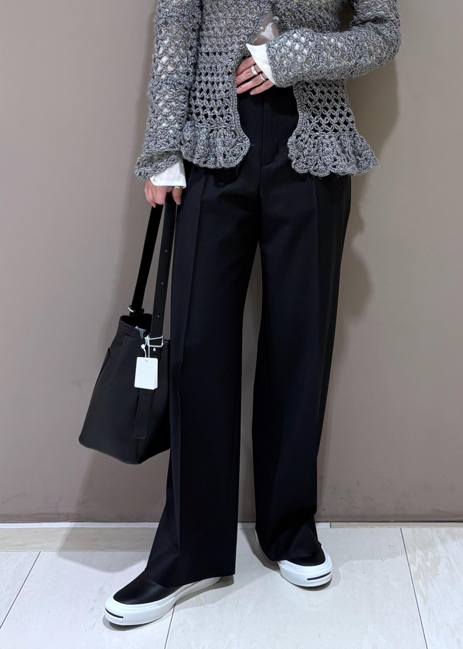 EMOELLE【EMOELLE】センタープレススラックスブラック / 36¥20,790レビュー162cm、36サイズ着用。