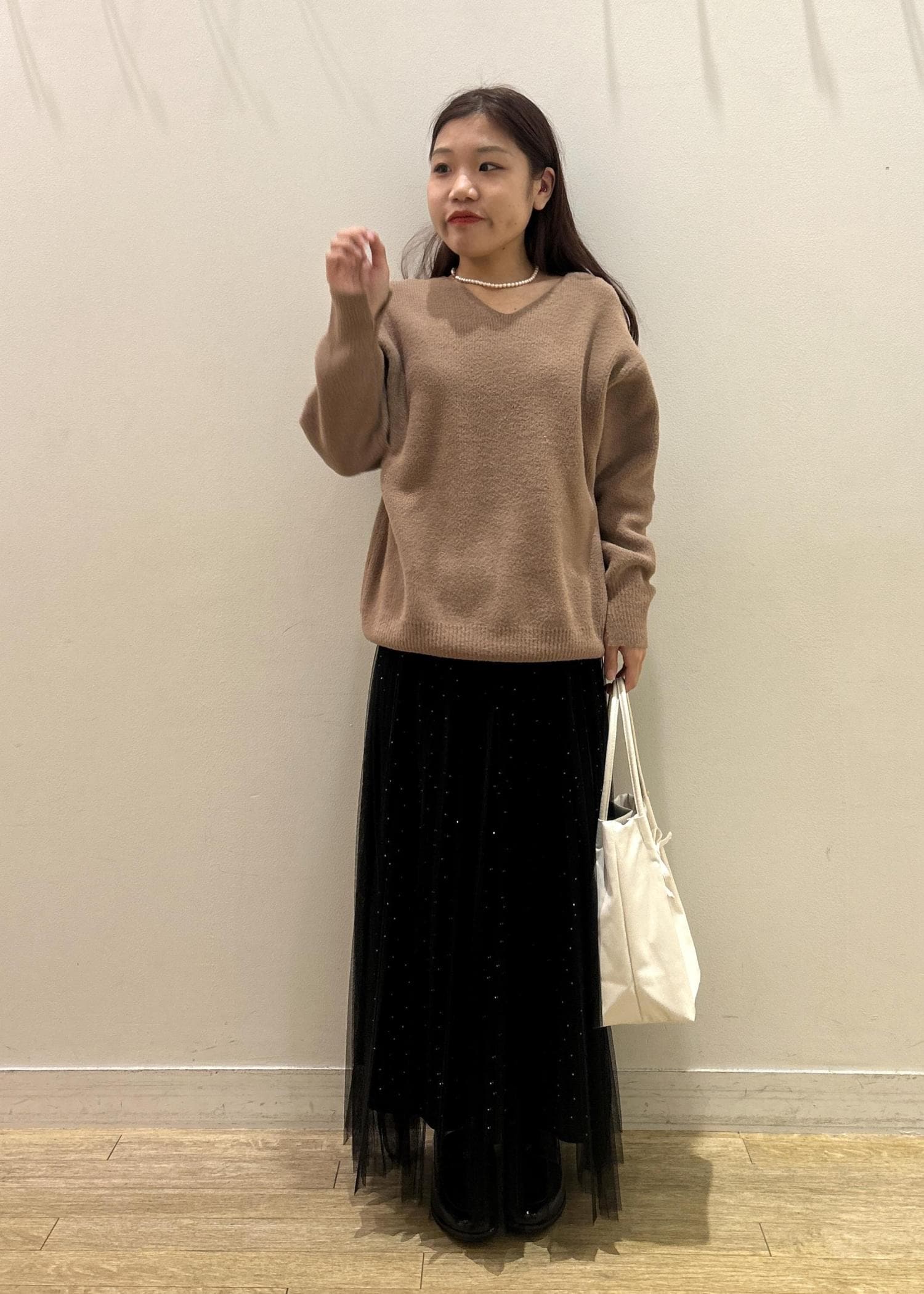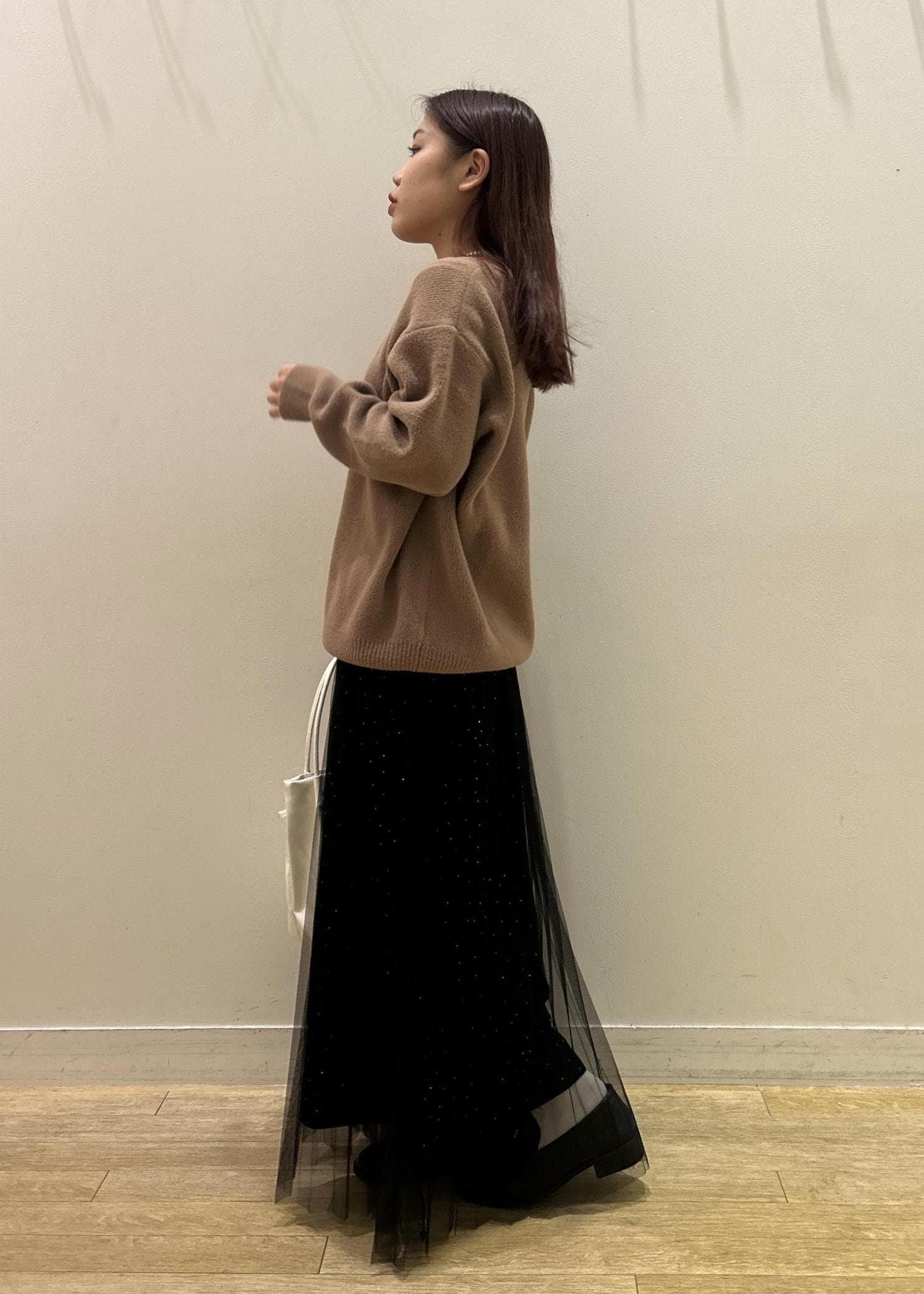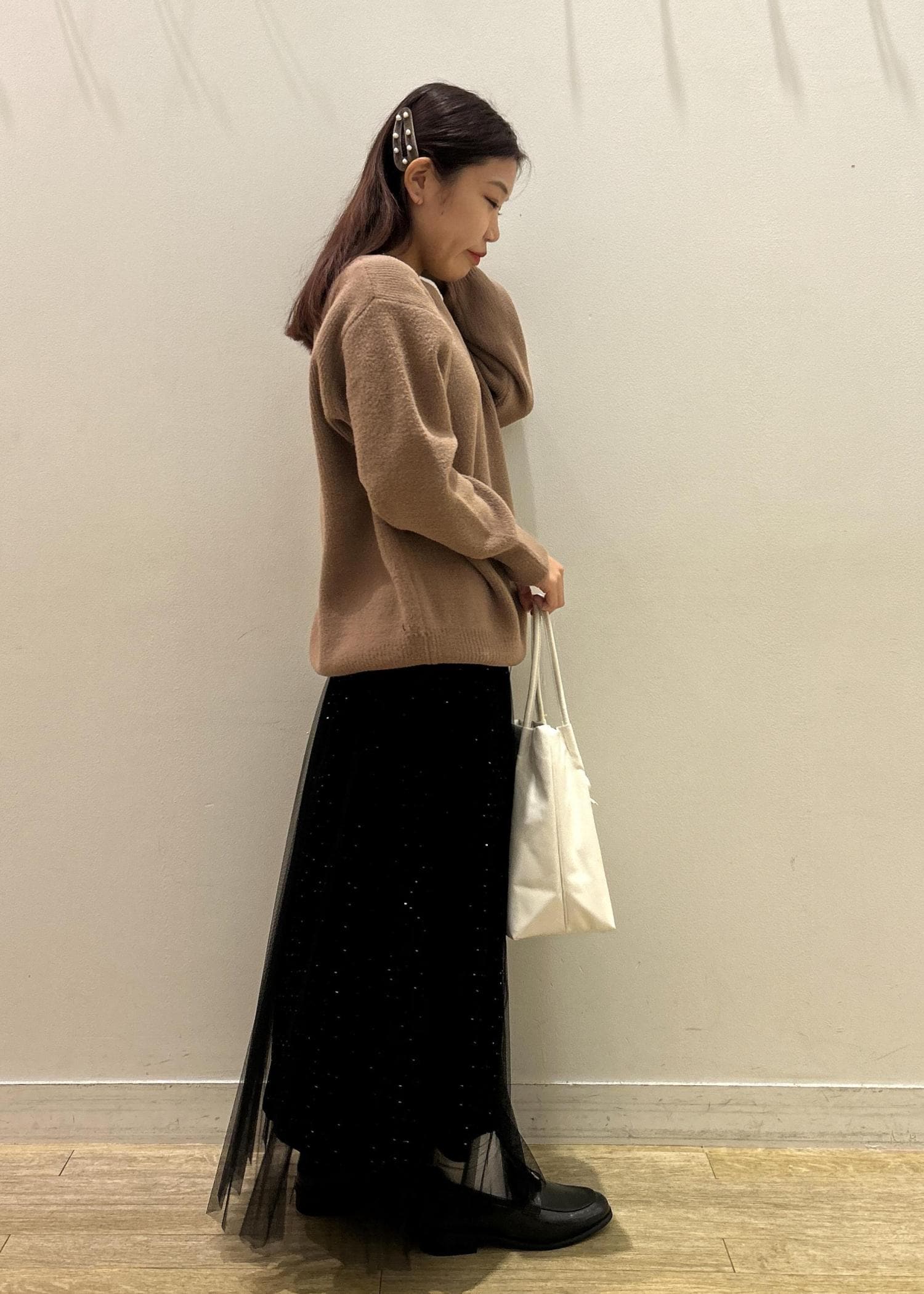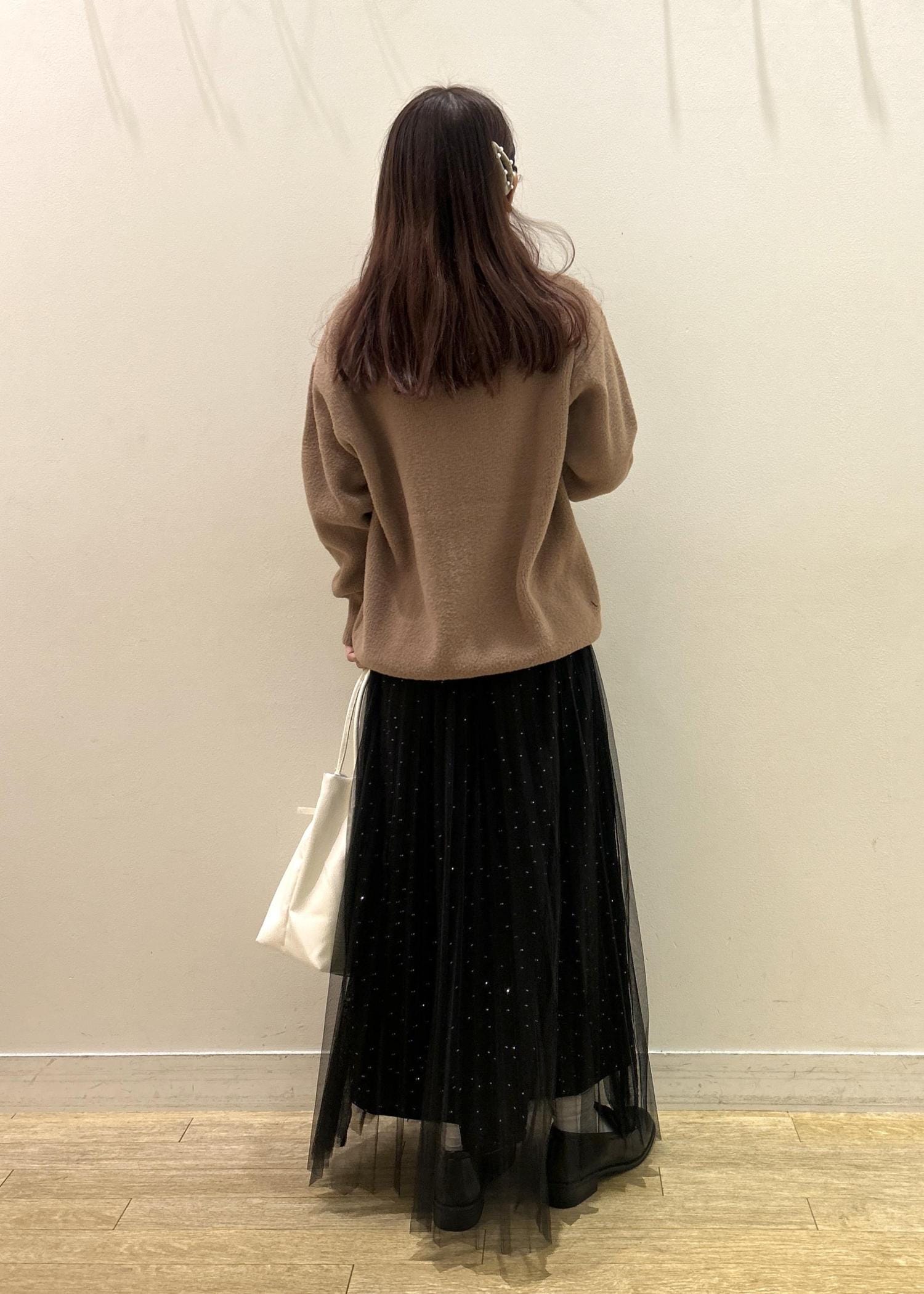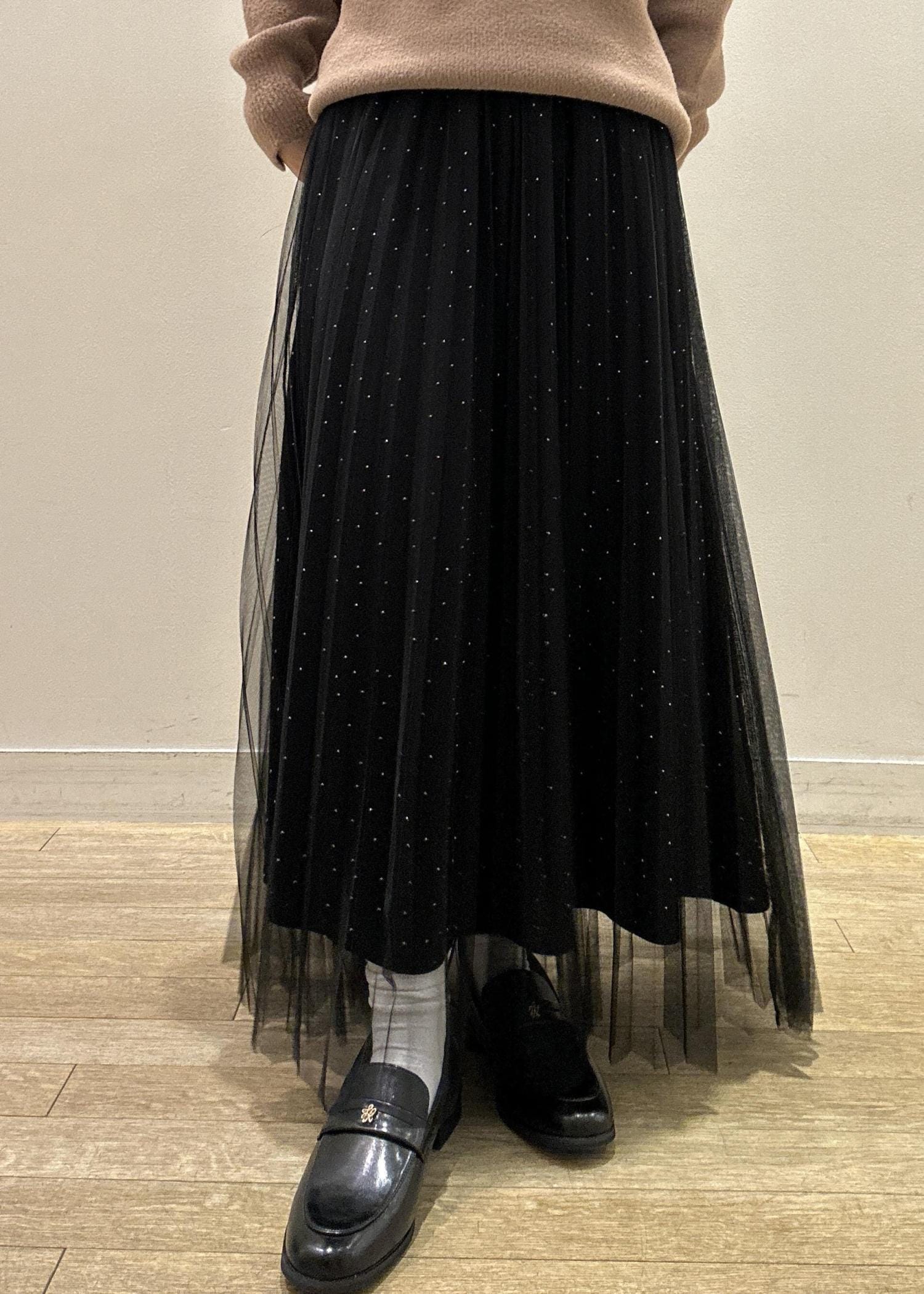 ROPÉ PICNICキラキラチュールプリーツスカート/着丈が選べるブラック / M¥6,490レビュー147㎝でも足首ぐらいの長さで、フラットシューズでも履ける長さなので小柄な方にもおすすめです。