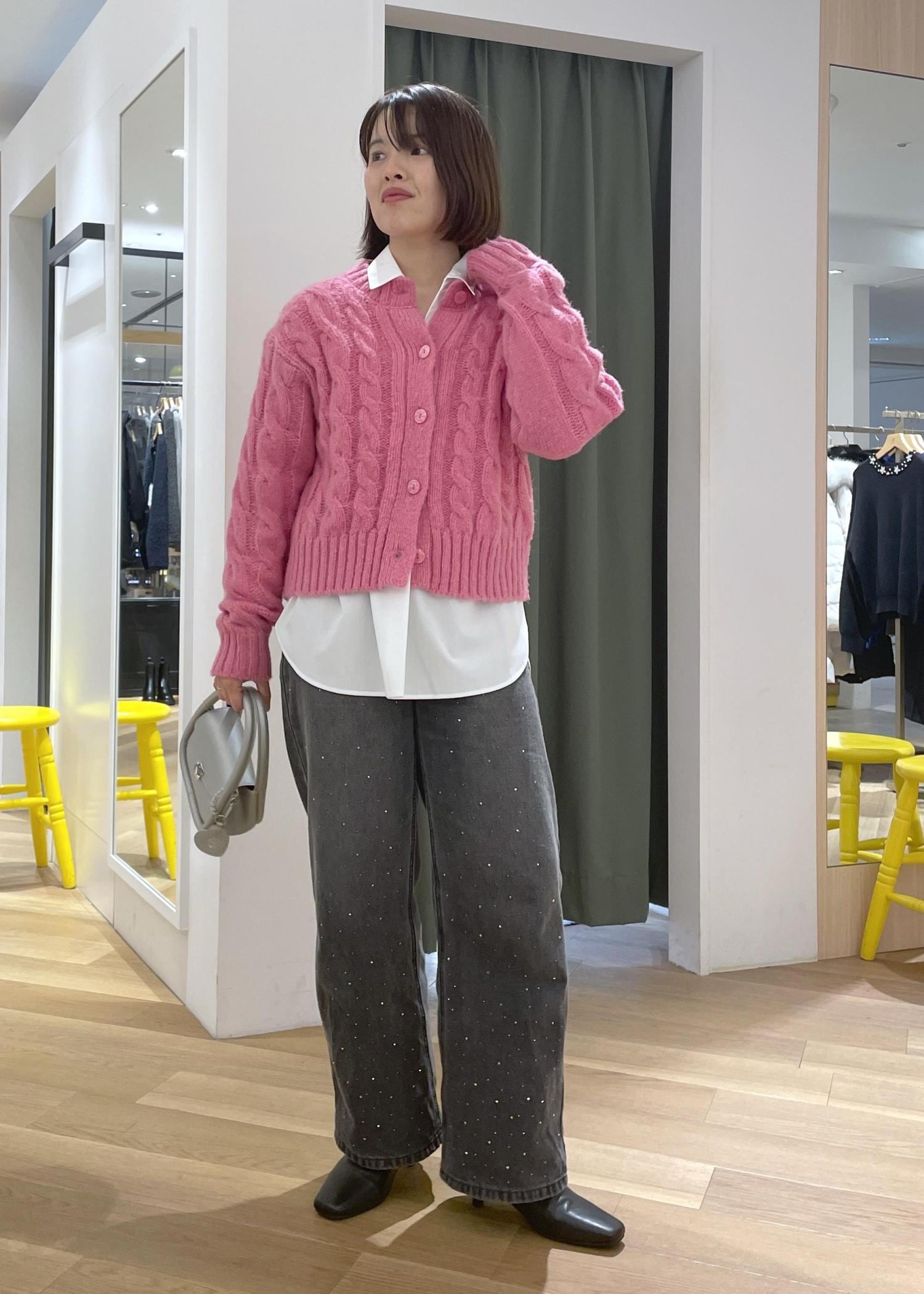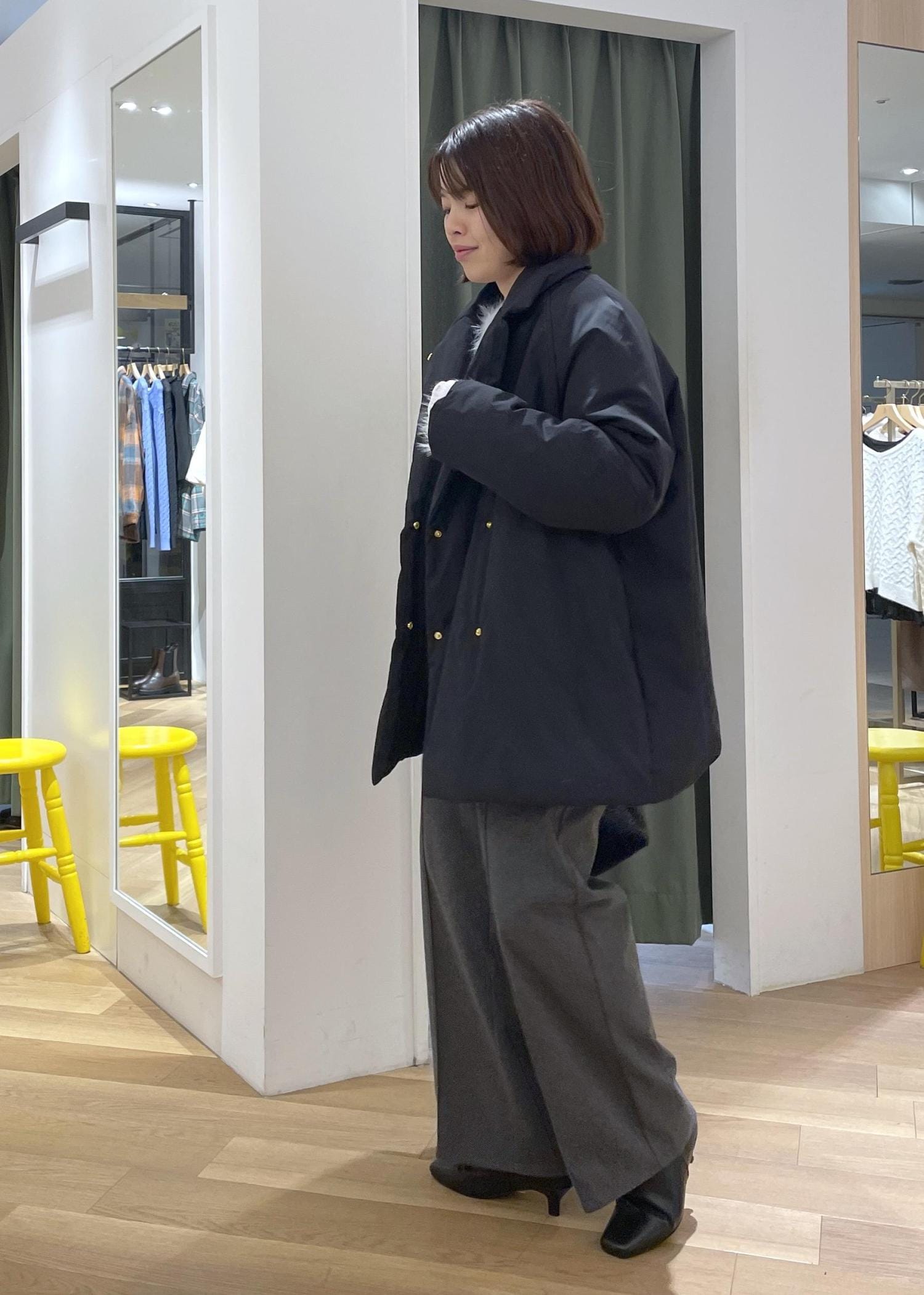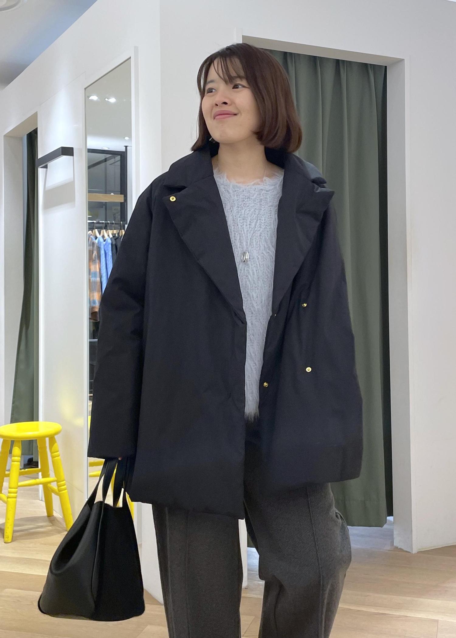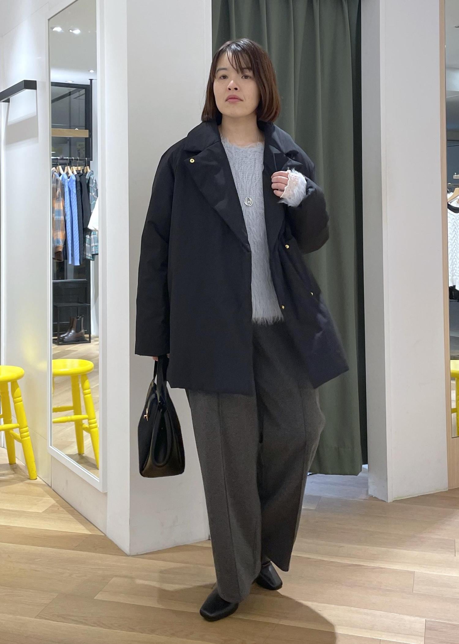 カジュアルだけど、きちんと見えもするテーラード中綿アウターに、着映えするフェザーニットを合わせて、新年会などにもおすすめの大人カジュアルコーデです!