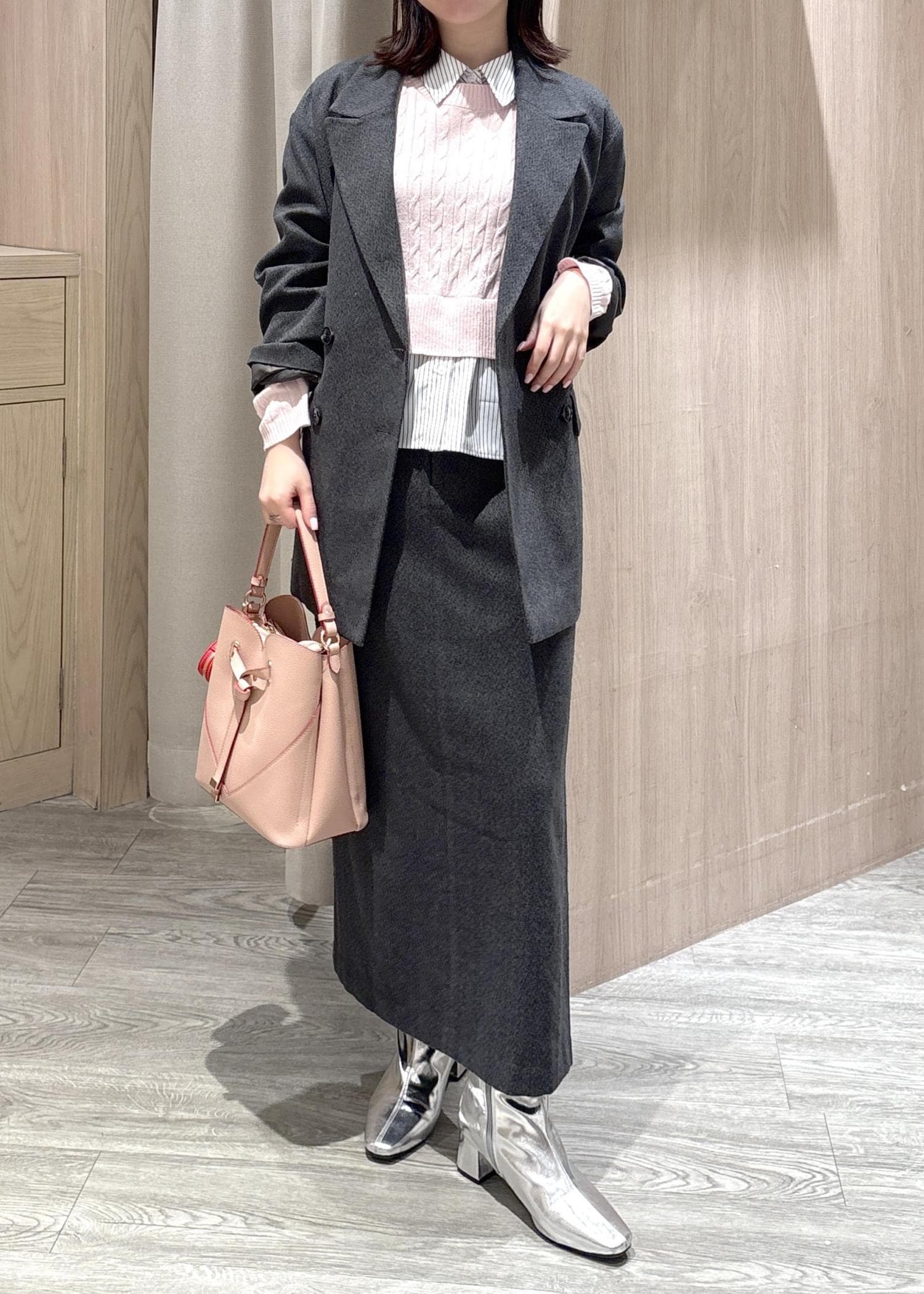 VISへリンボーンIラインロングスカート/セットアップ対応チャコール / S¥3,953レビューくるぶしが見える丈の長さで、ウエストはやや小さめに感じました◎