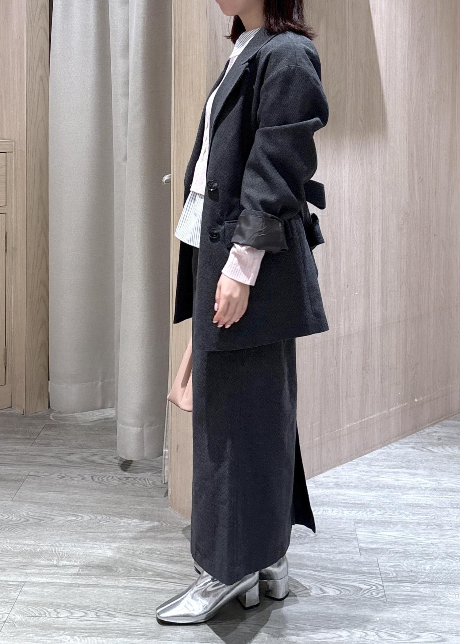 ウエストリボン付きなので、コートみたいにウエスト絞ったり、後ろで結んでスタイリッシュに見せたり、アレンジできるのも嬉しいポイント◎