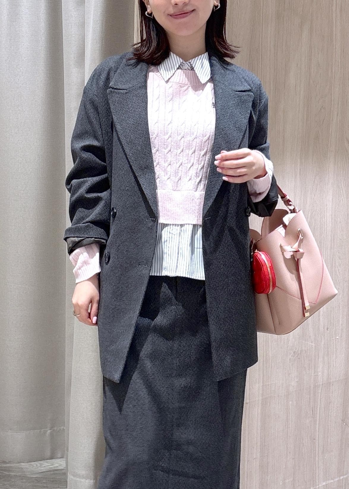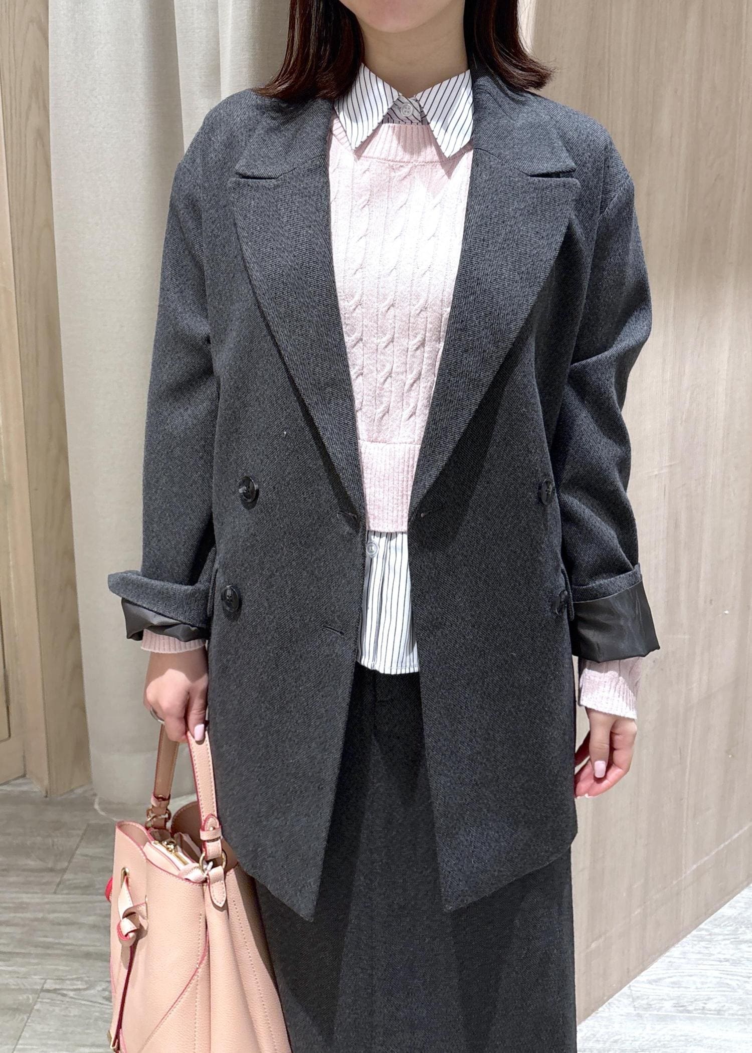 VISヘリンボーンツイードベルテッドジャケット/セットアップ対応チャコール / F¥7,999レビューオーバーサイズで、かなりゆとりがありお尻もすっぽりと隠れる丈の長さです!
