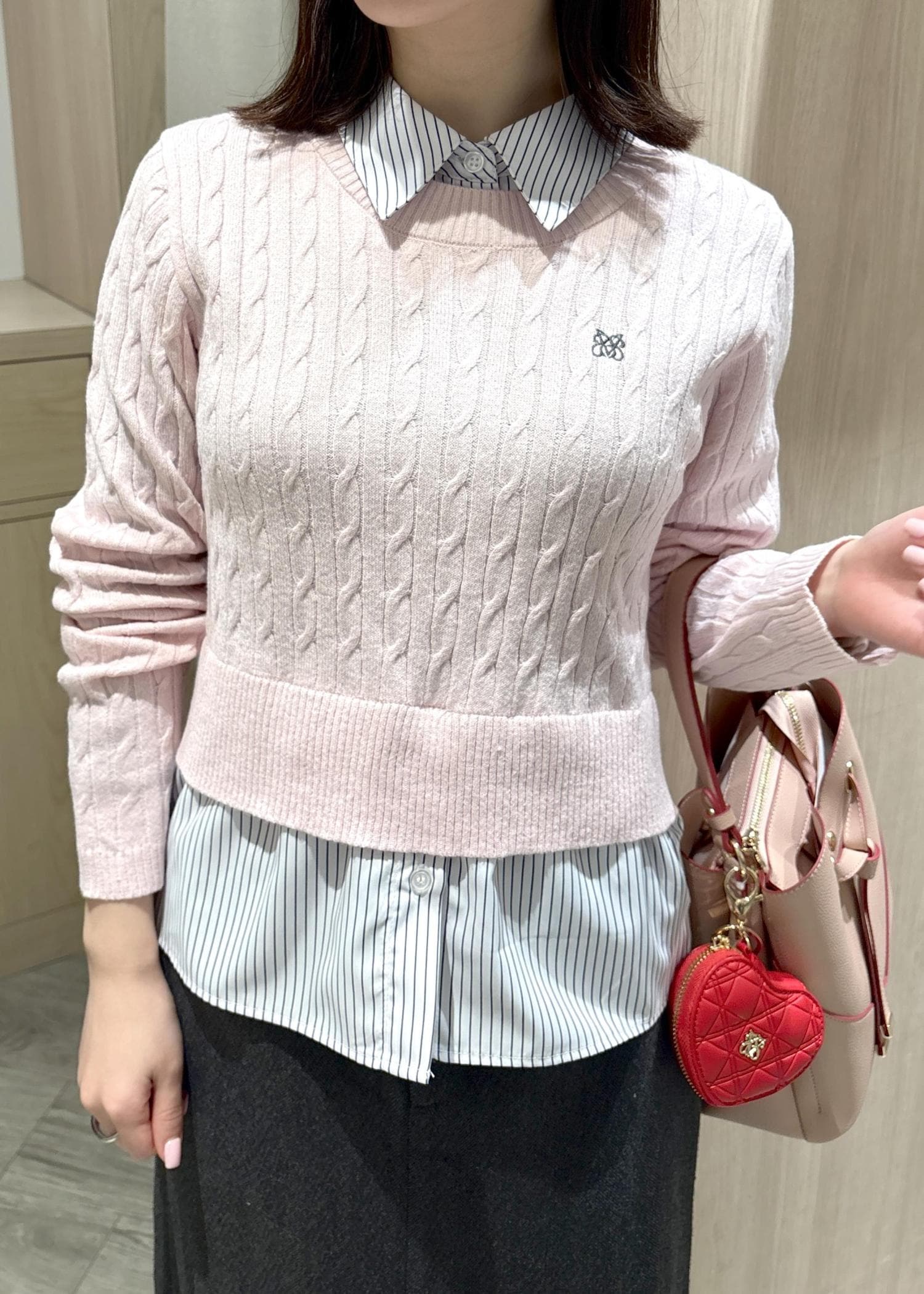 NEW!VIS【美得】ハイゲージケーブシャツドッキングプルオーバーピンク / F¥5,489レビュー襟と裾にシャツかドッキングされており、一枚でおしゃれ見えするトップスです!