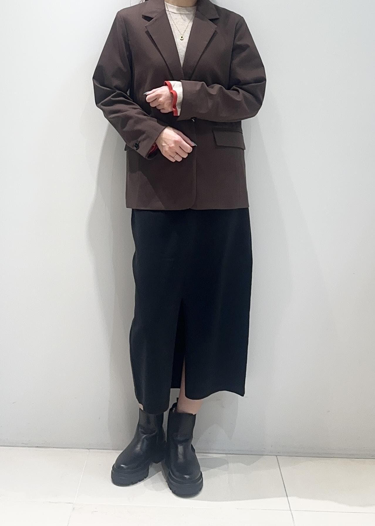 インナーは明るめカラーを合わせることで重たくなりすぎず、