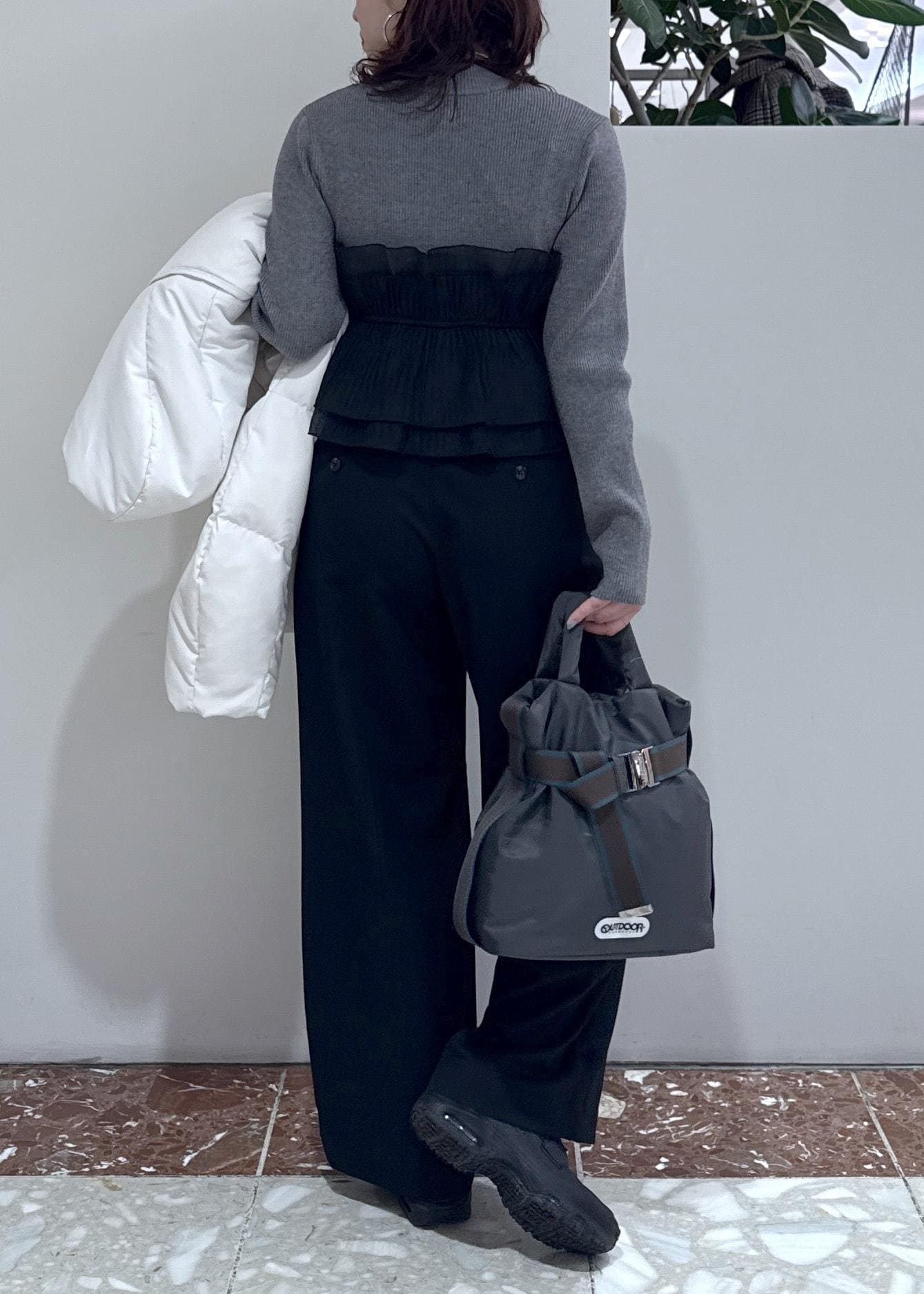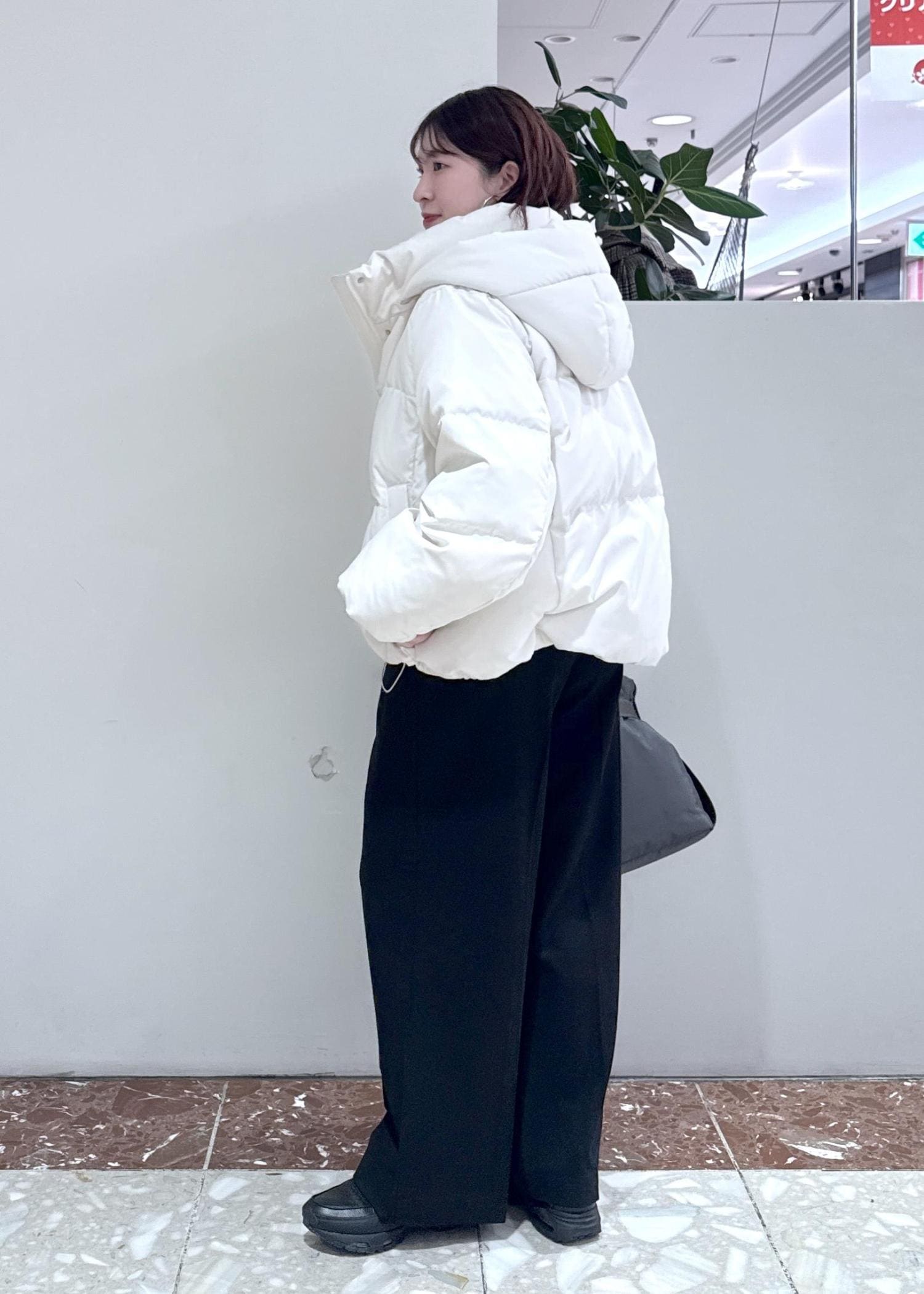 ゆったりとしたサイズ感なのに着膨れしないアウターで後ろ姿もスッキリ見えが叶います! -