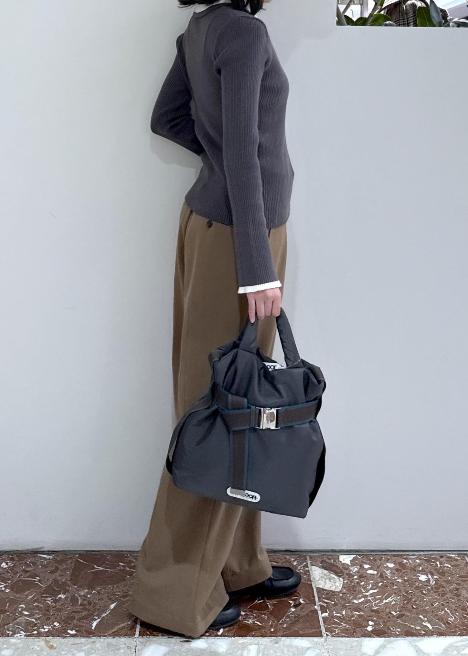 程よいハリ感があり、綺麗めにもカジュアルにも合わせやすいバッグです。 -