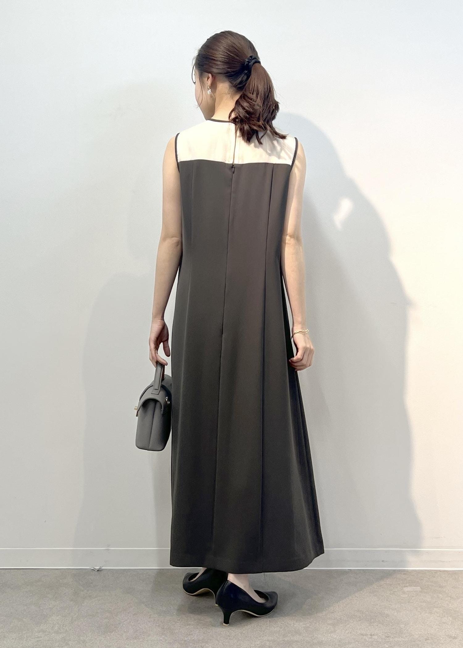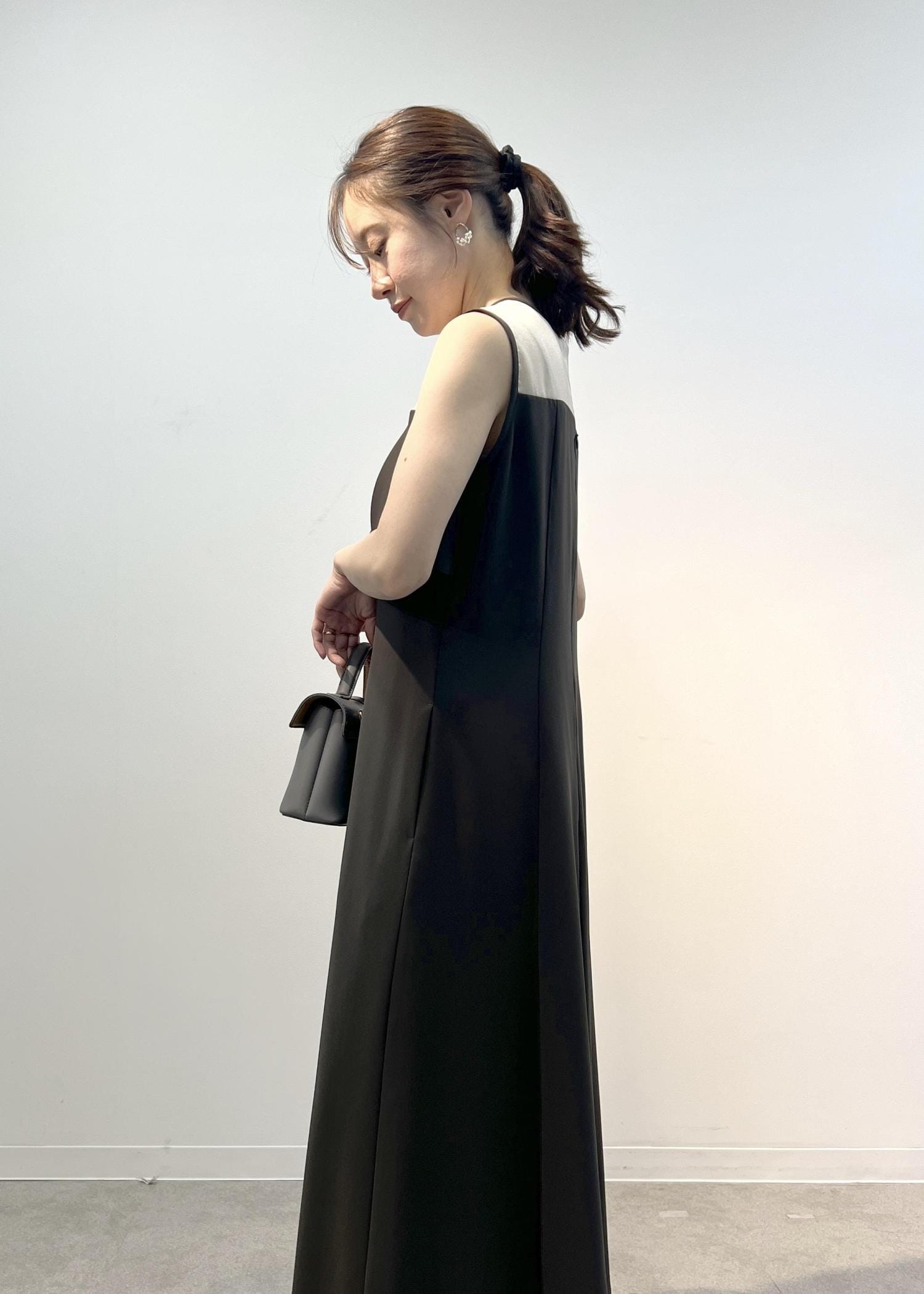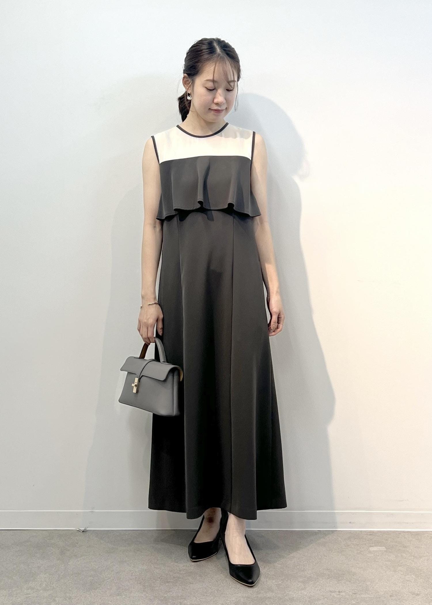 インナーの肩紐が少し透けるので、ベージュ系の目立たないものを着るのがおすすめです。 -