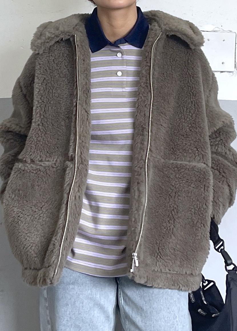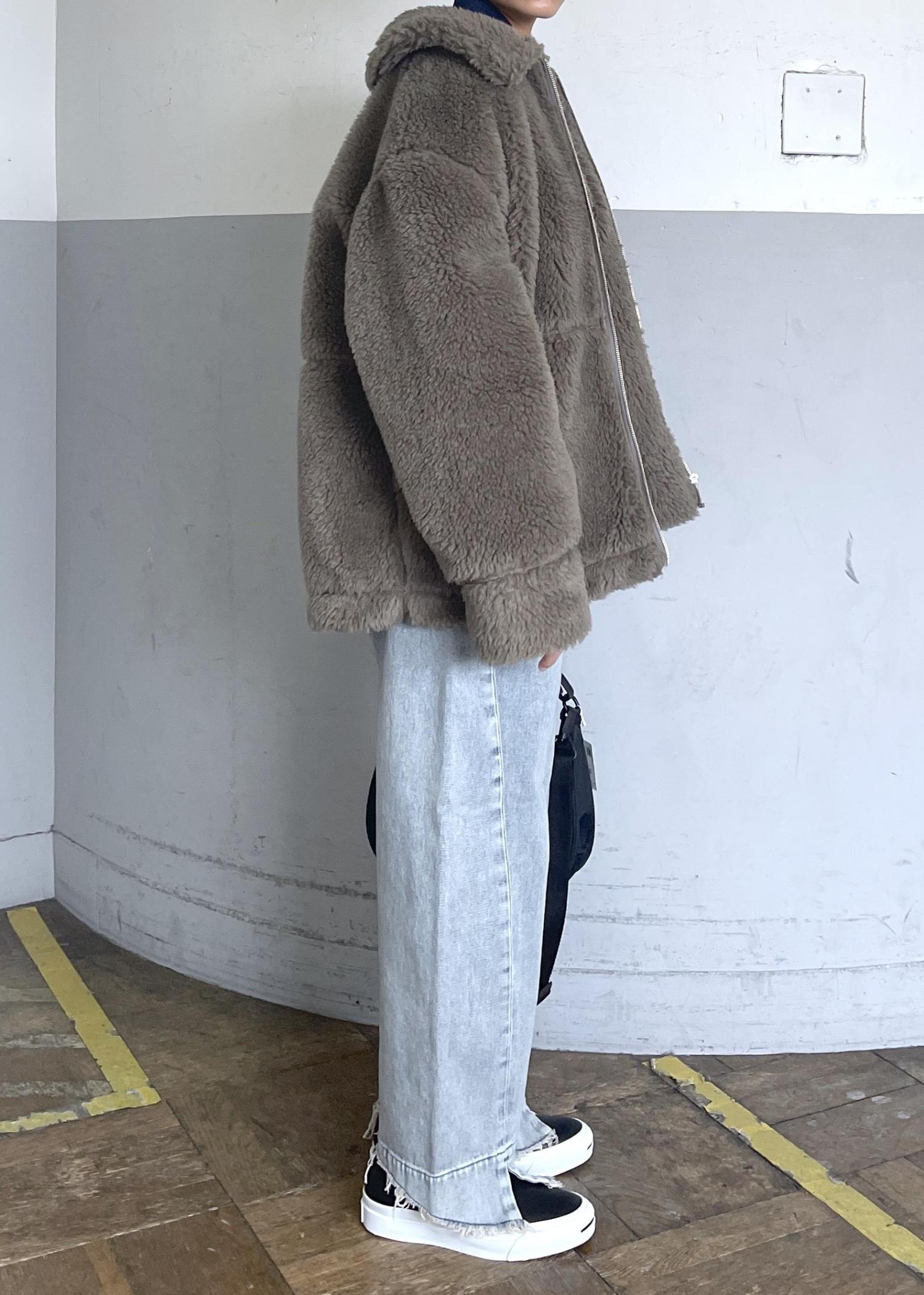 今回のコーディネートはもこもこ素材のボアジャケットを主役に、程よく力の抜けたカジュアル感が魅力です。