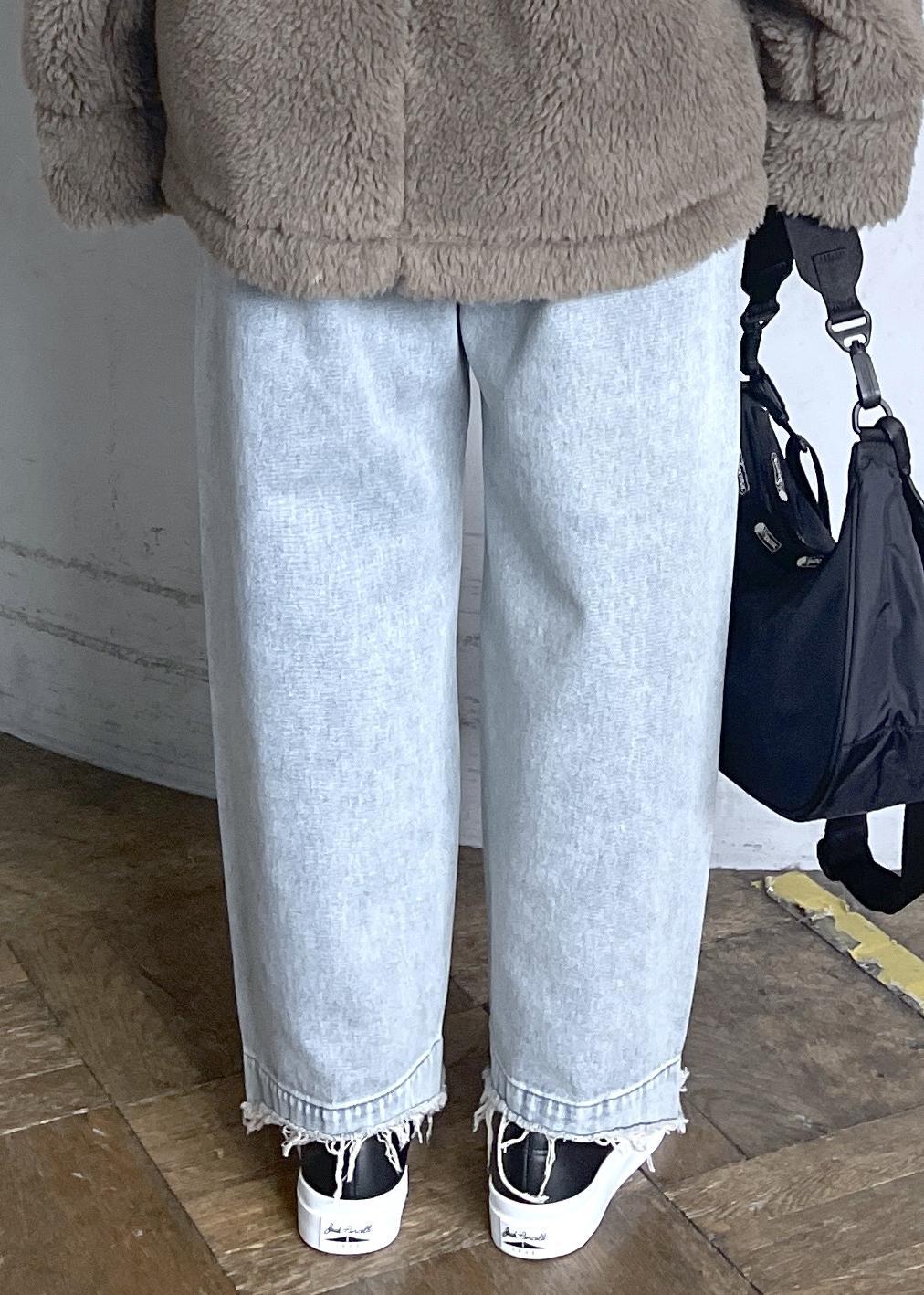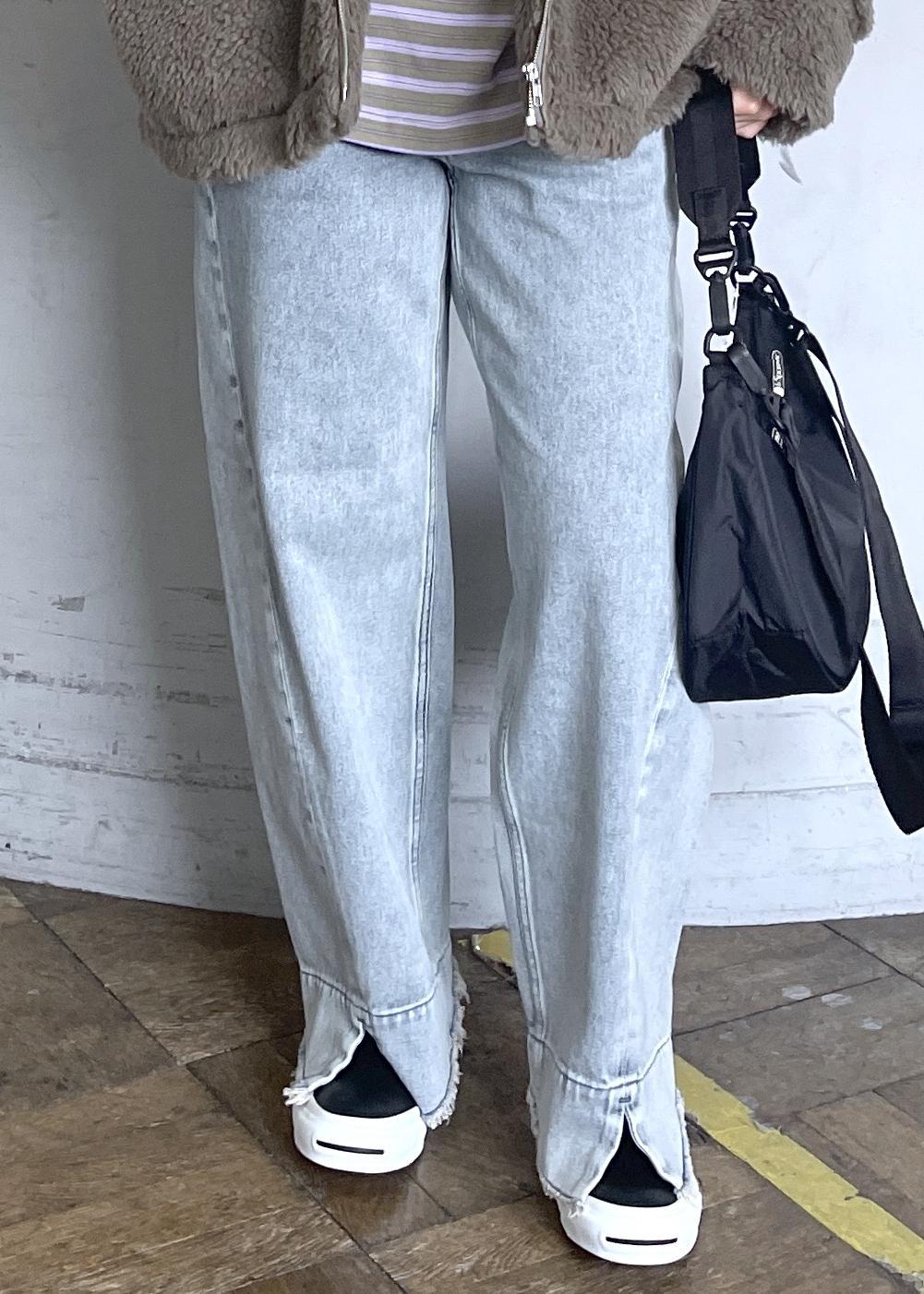 淡い色のデニムとボリュームのあるアウターのバランスも意識しています。