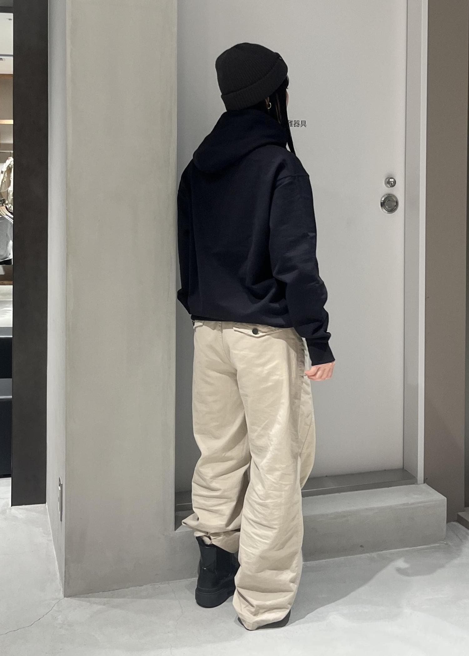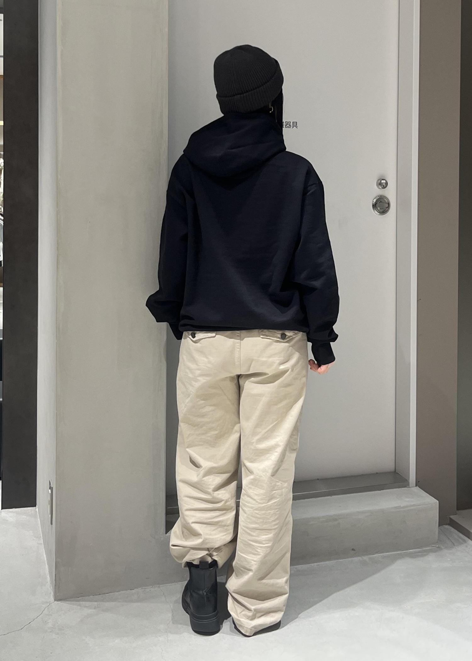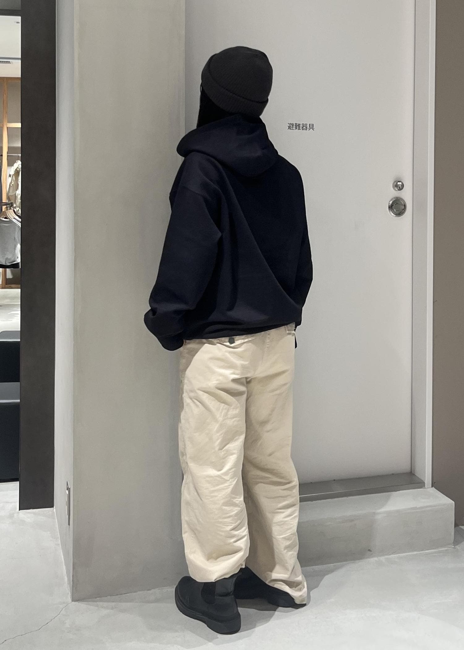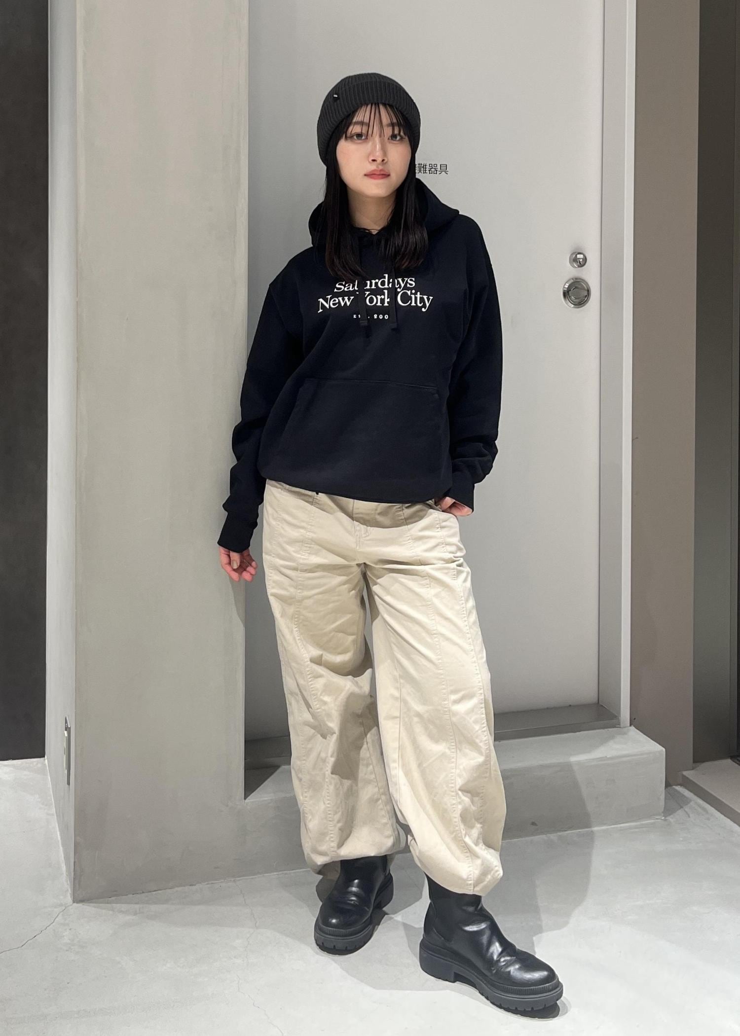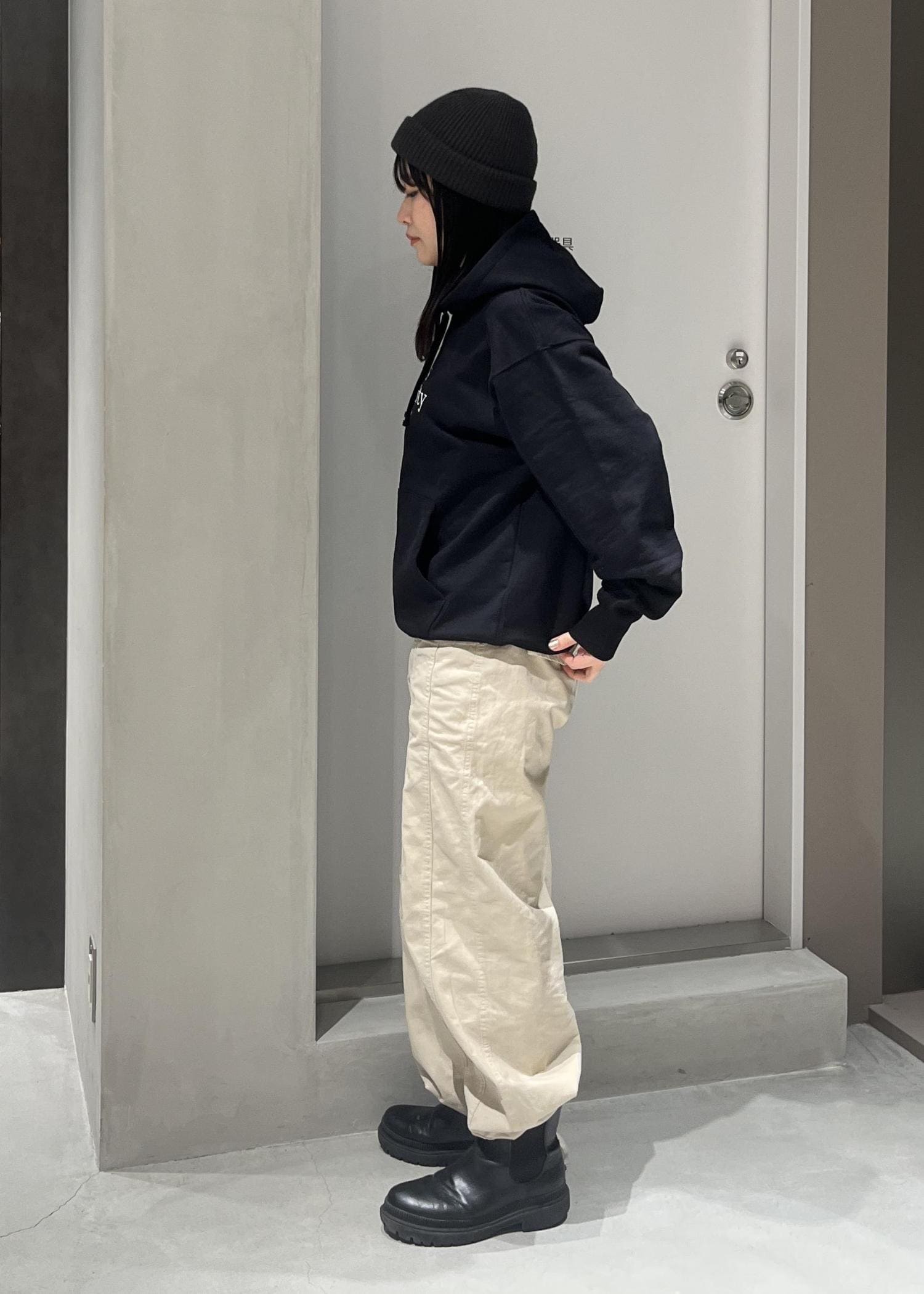 ミラスタロゴのフーディーを使ったシンプルなスタイリングを組みました!