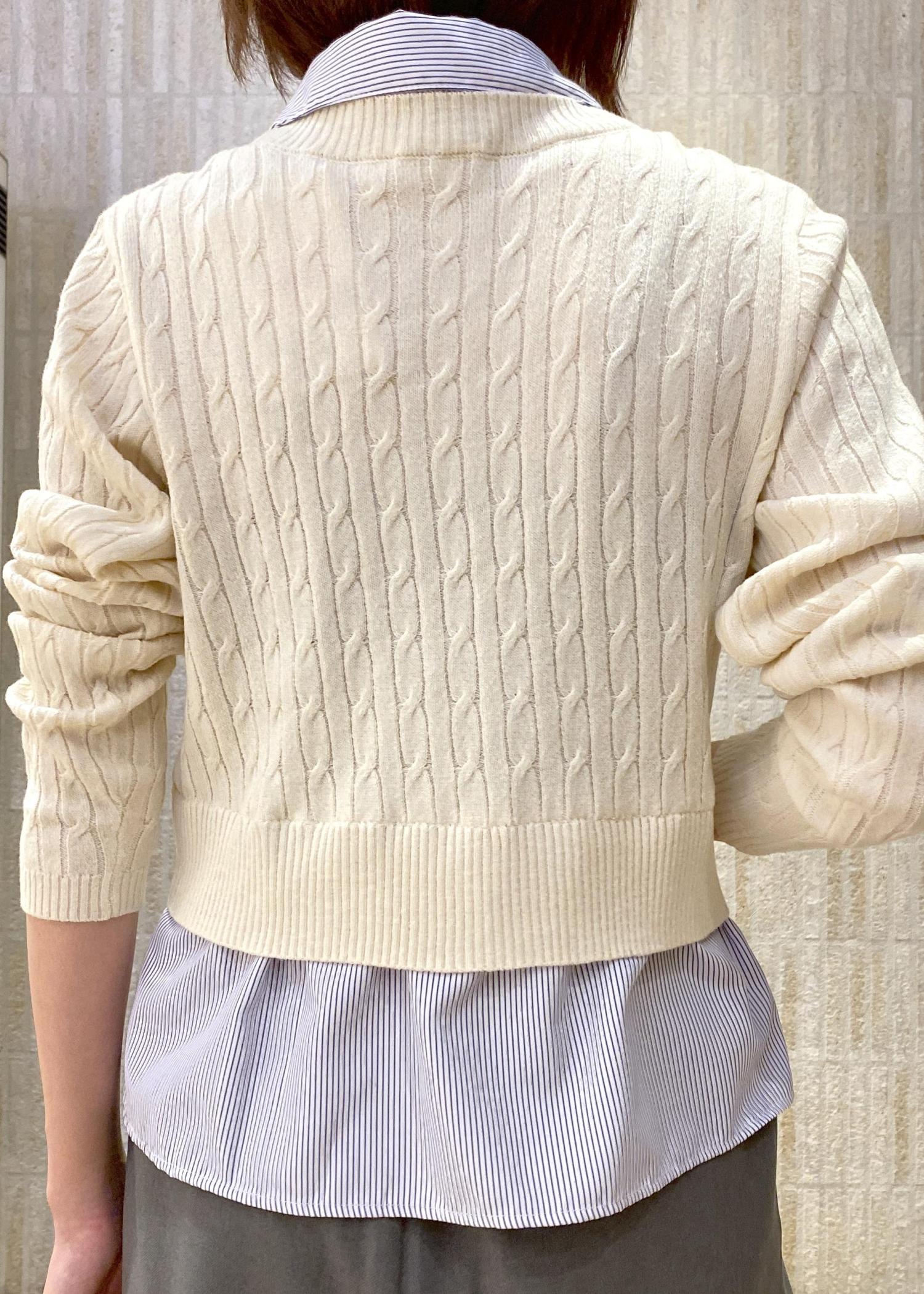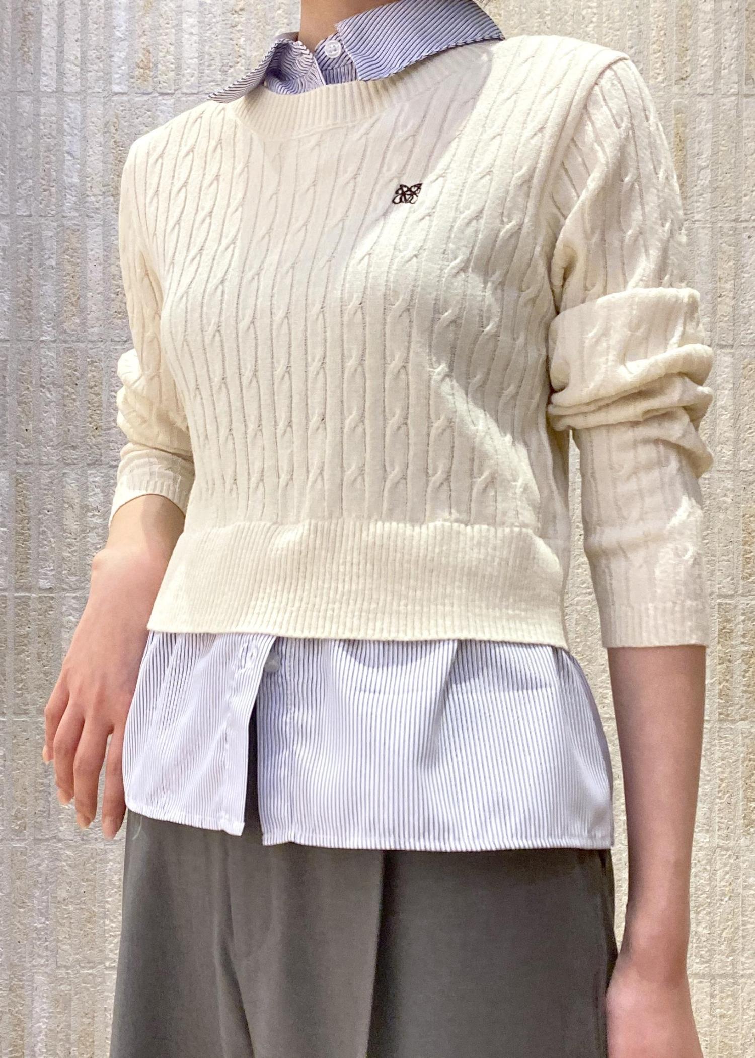 NEW!VIS【美得】ハイゲージケーブシャツドッキングプルオーバーキナリ / F¥5,489レビュー1枚でレイヤードスタイルが叶う、シャツドッキングケーブルニットです!