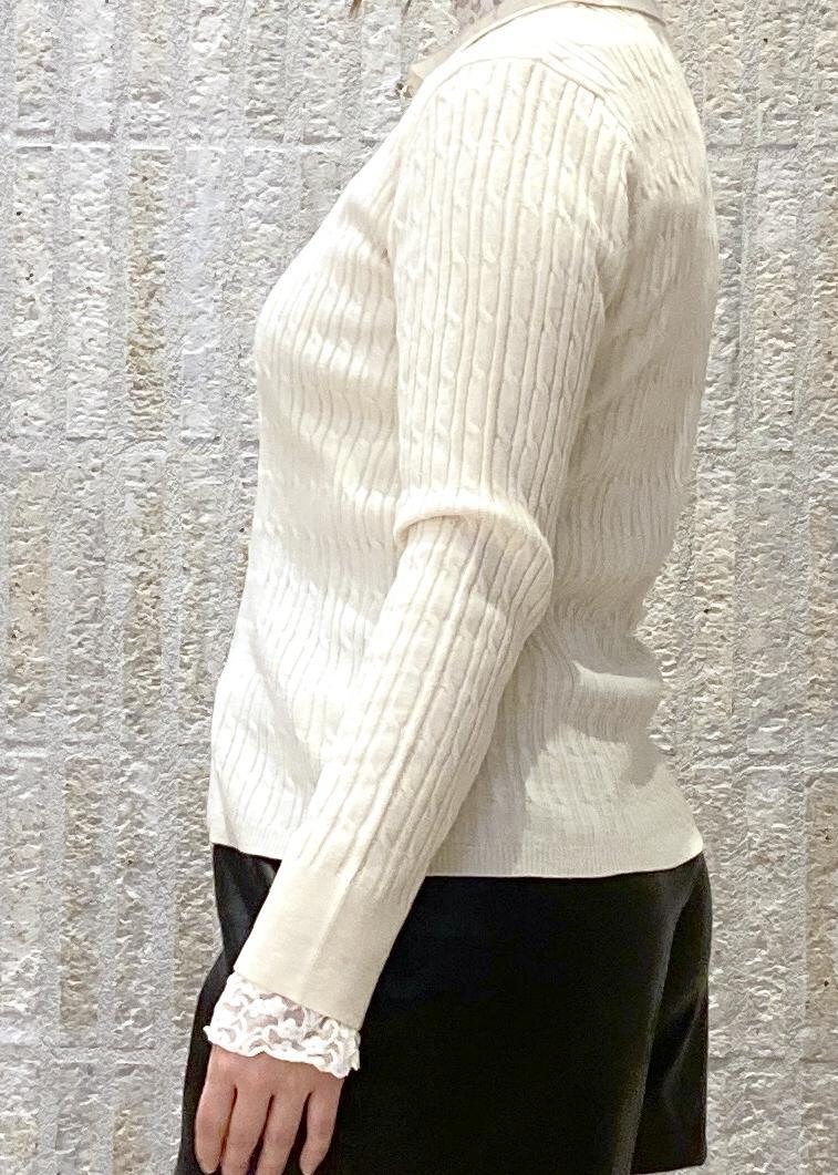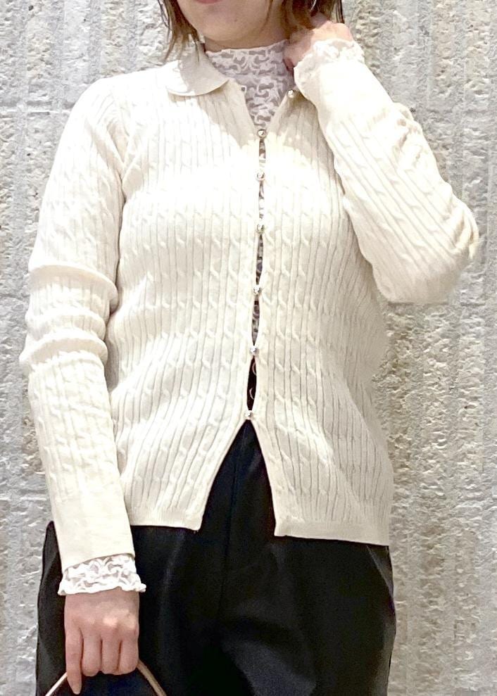 VISポロ衿ケーブルカーディガンキナリ / F¥5,929レビュー人気のケーブル編みカーディガンの