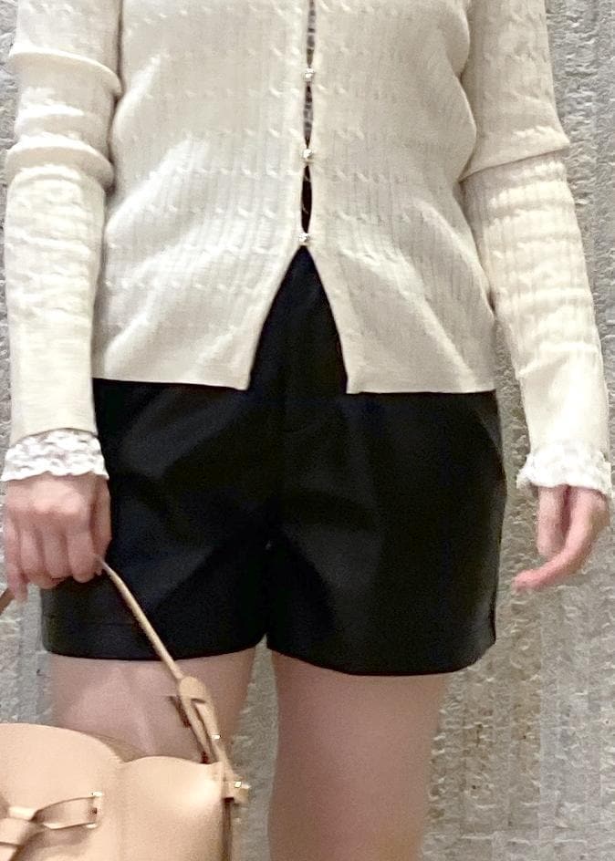 ケーブルのニット×ショートパンツに