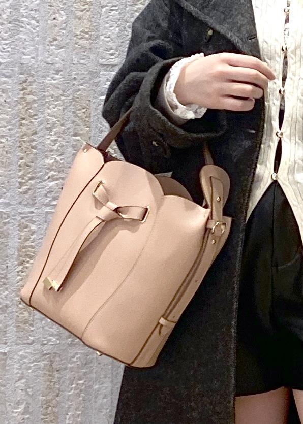 差し色でバッグのピンクを取り入れてます。
