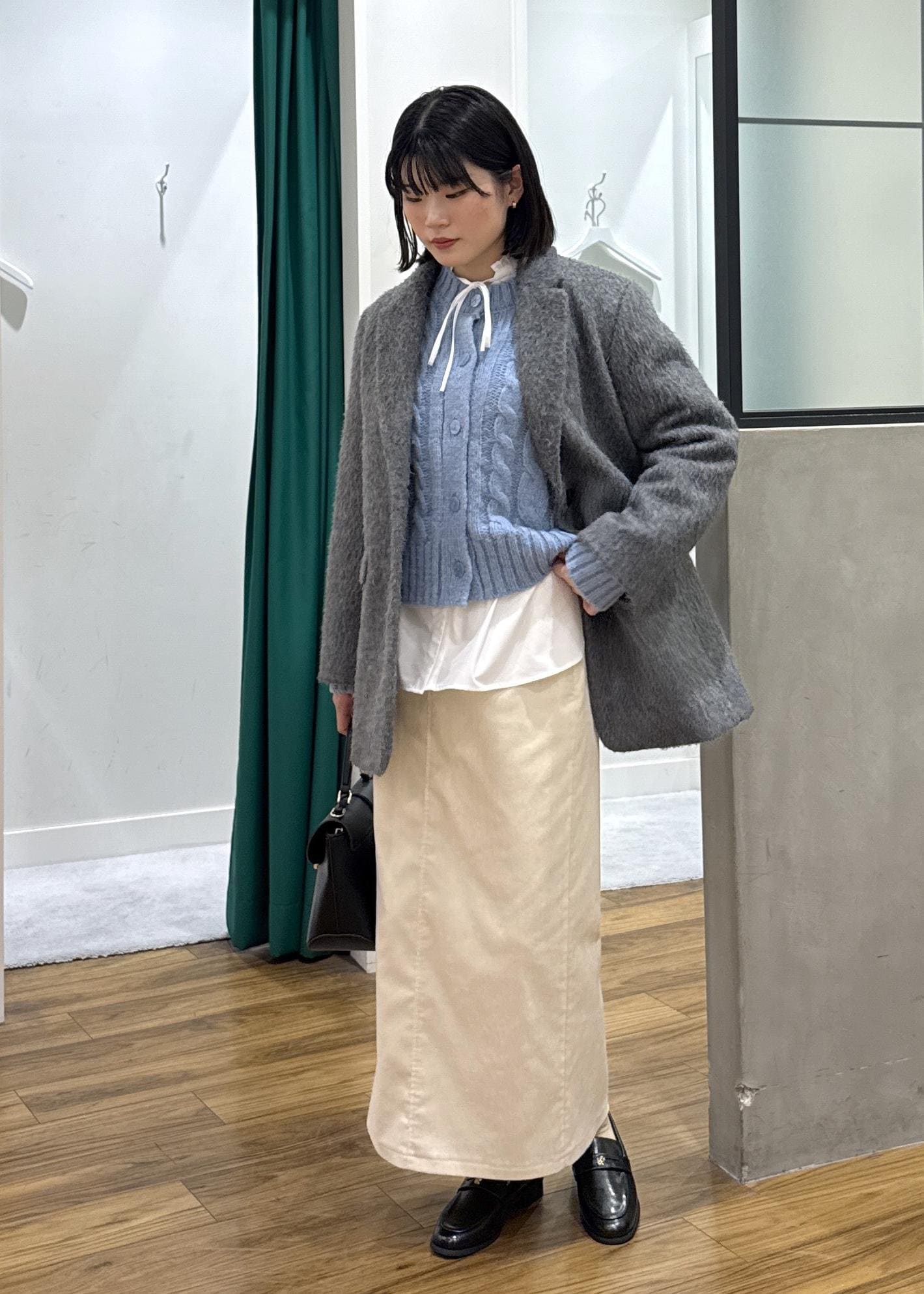 ROPÉ PICNICシャギーテーラードジャコットグレー / F¥10,560レビューオーバーめなデザインですが、着られてる感はなく綺麗なスタイルで羽織ることができます。