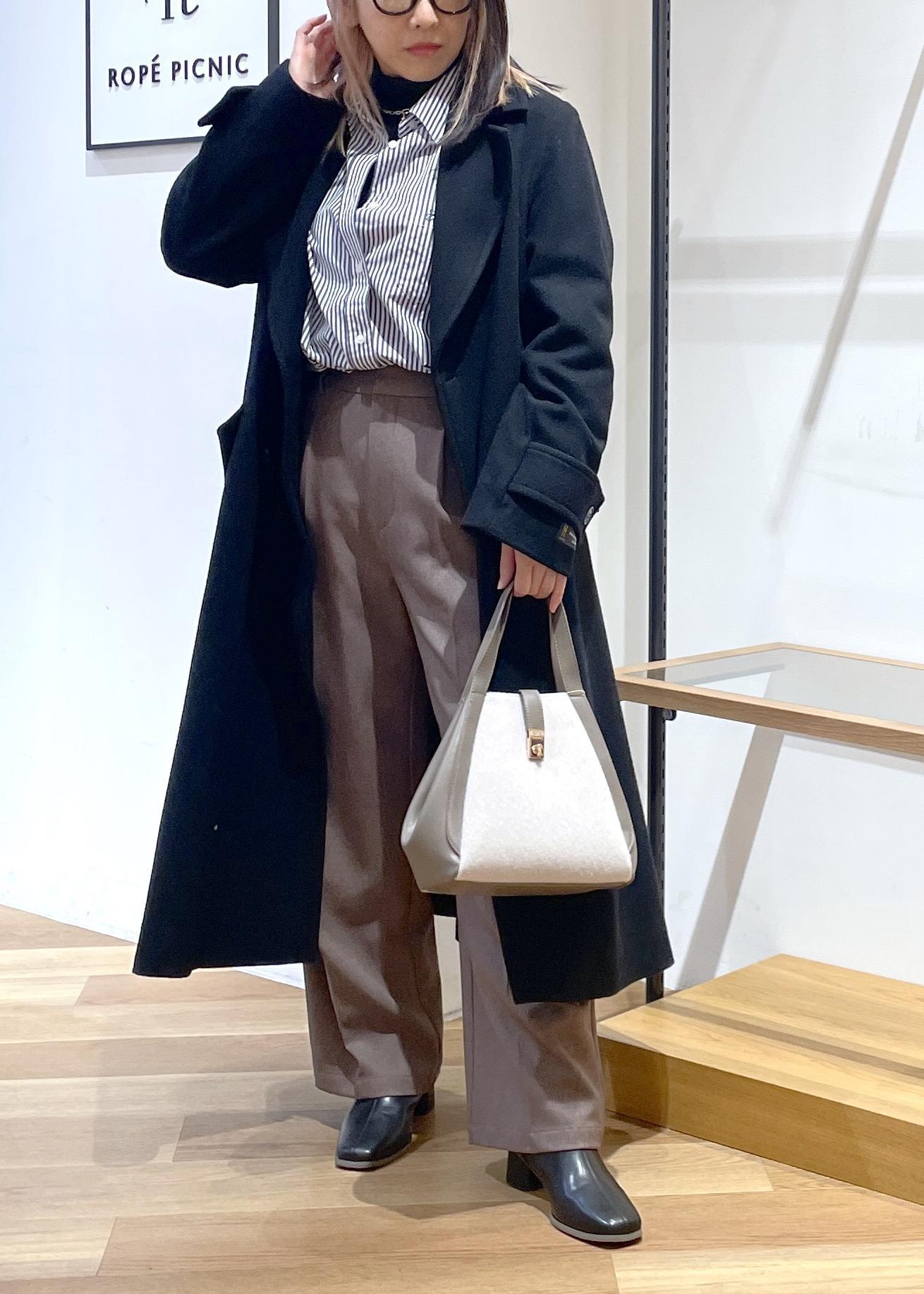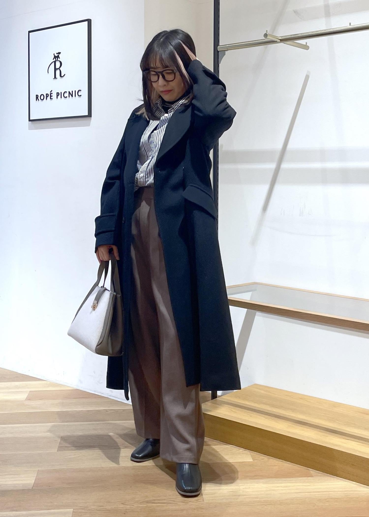 ROPÉ PICNICJAPAN FABRIC ダブルチェスターコート/一部WEB限定カラーブラック / F¥19,800レビュー毎年大人気のウールのロングコートです。手触りは滑らかで柔らかい着心地です。暖かいのはもちろん、裾に向かって少し広がるシルエットが女性らしく素敵です。