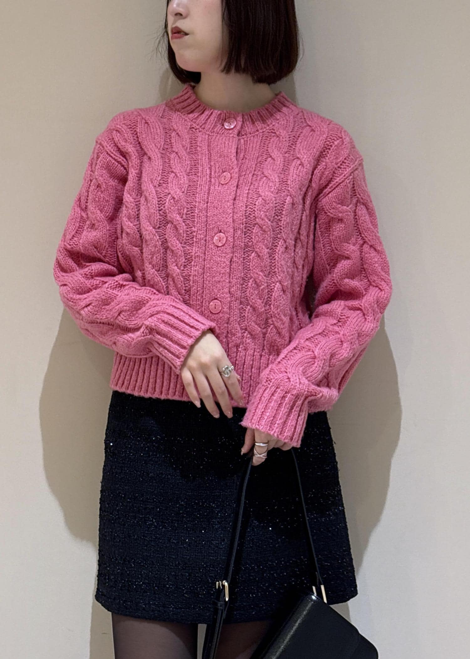 ケーブル編みニットカーディガン×女っぽ大人女子コーデ