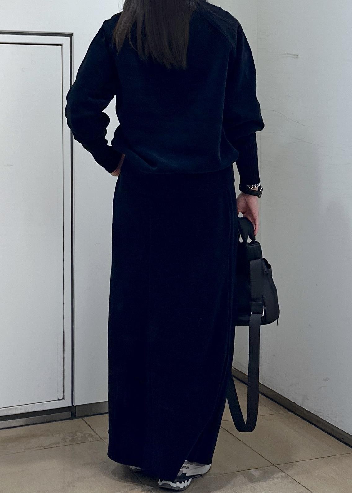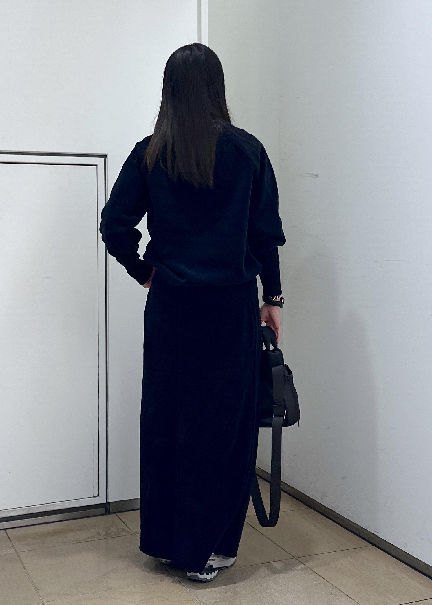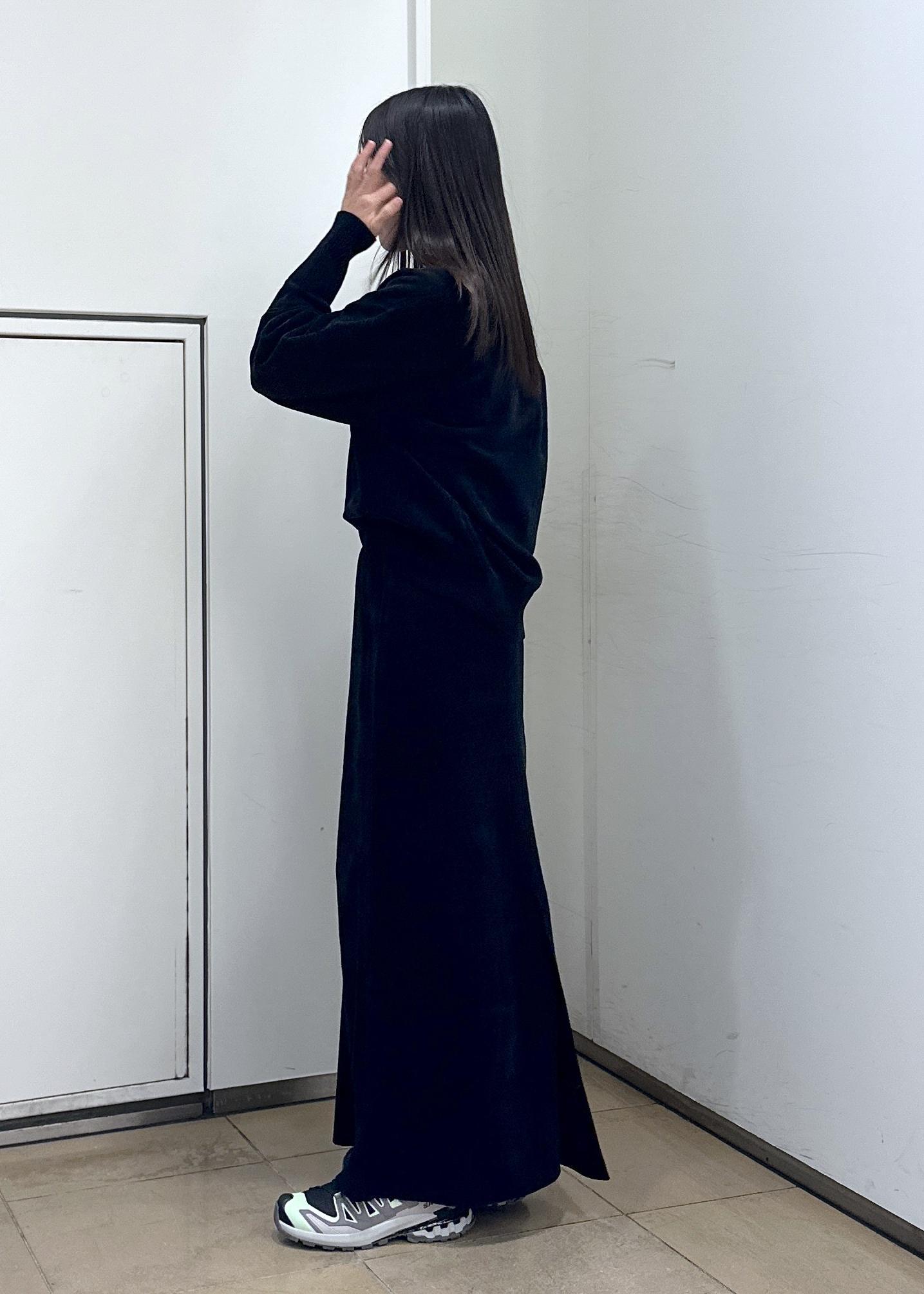 SALON adam et ropéナローロングスカート-CreamyCotton /クリーミーコットン-ブラック / F¥23,100レビューオーガニックコットンで柔らかく着心地がいい。