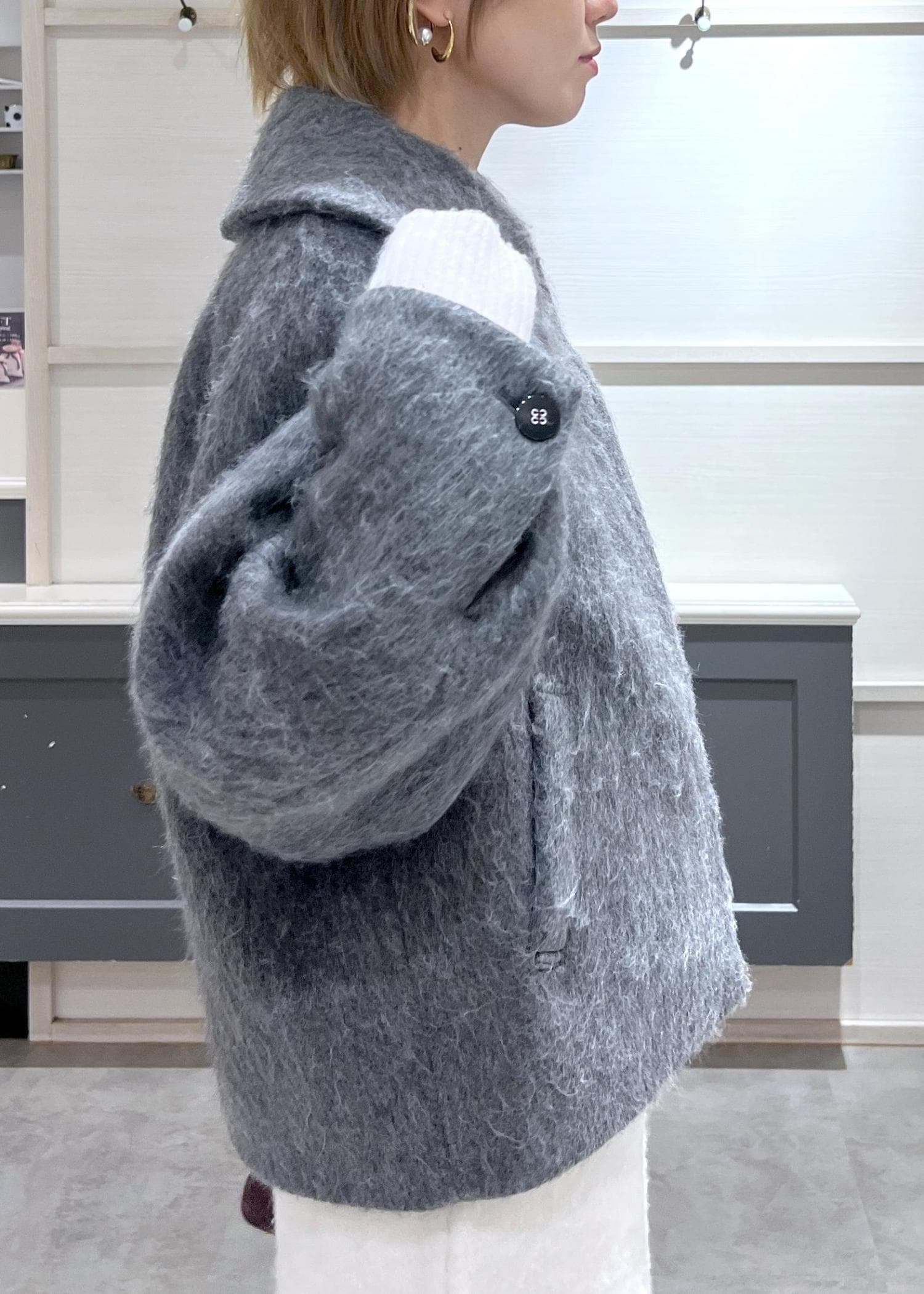 VIS【アウター総選挙1位】ビッグカラーモモンガシャギーショートコートグレー / S¥10,989レビュー166cm/Sサイズ着用