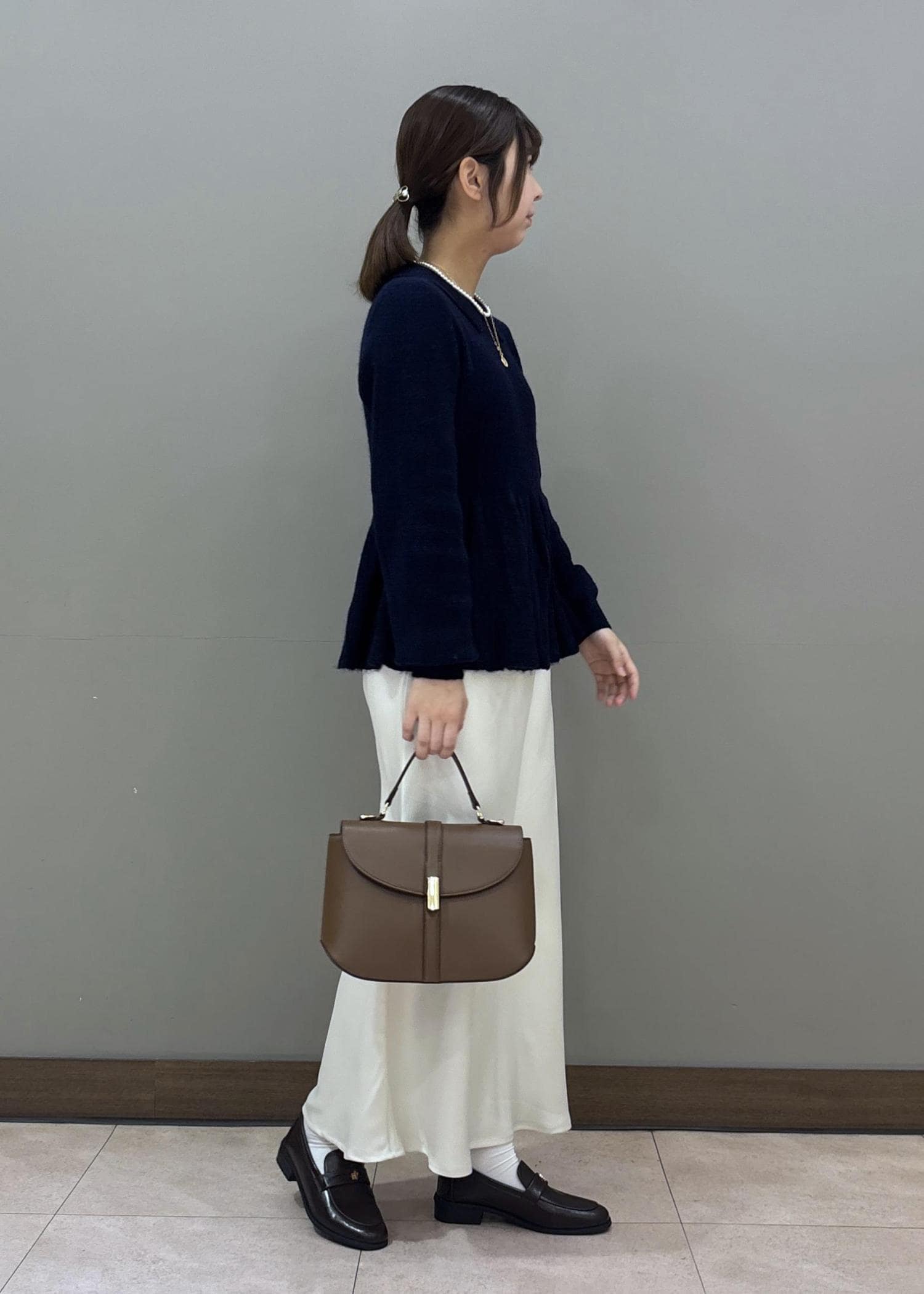 可愛らしさのあるペプラムアイテムを使ったベーシックコーデです。
