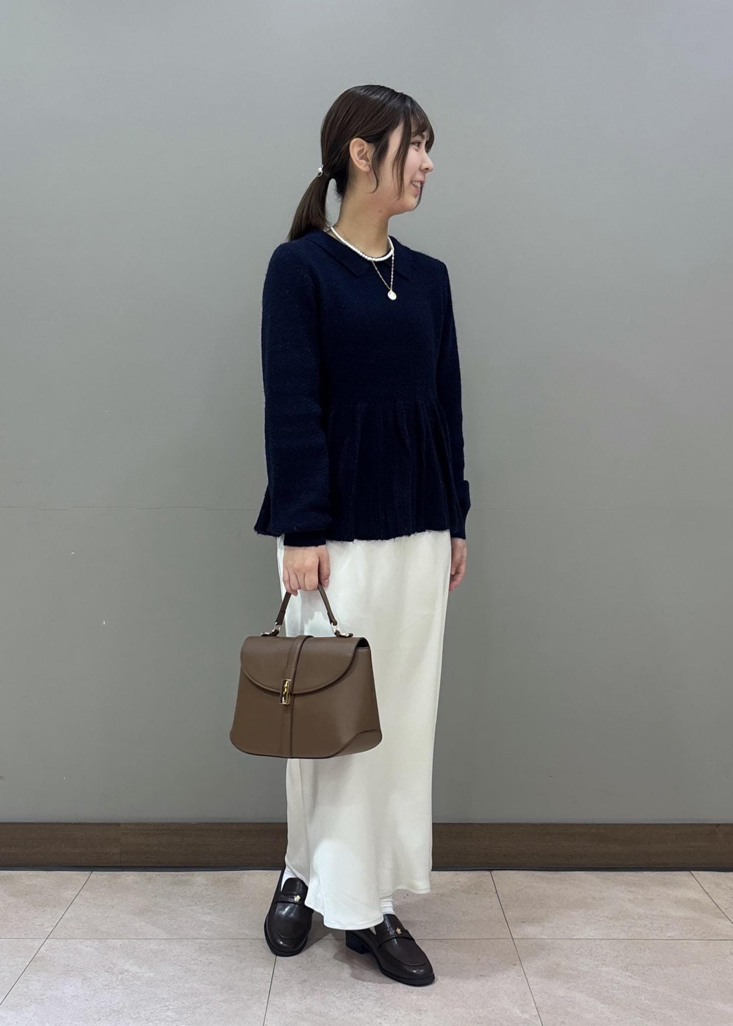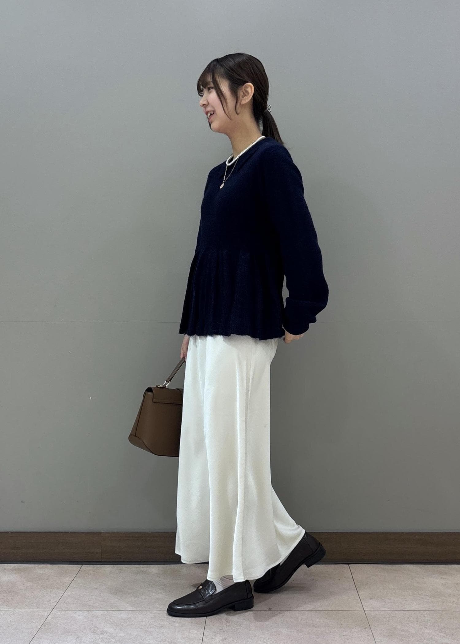 キレイめなスカートを合わせて、レディな感じに大人かわいいコーデを意識しました。