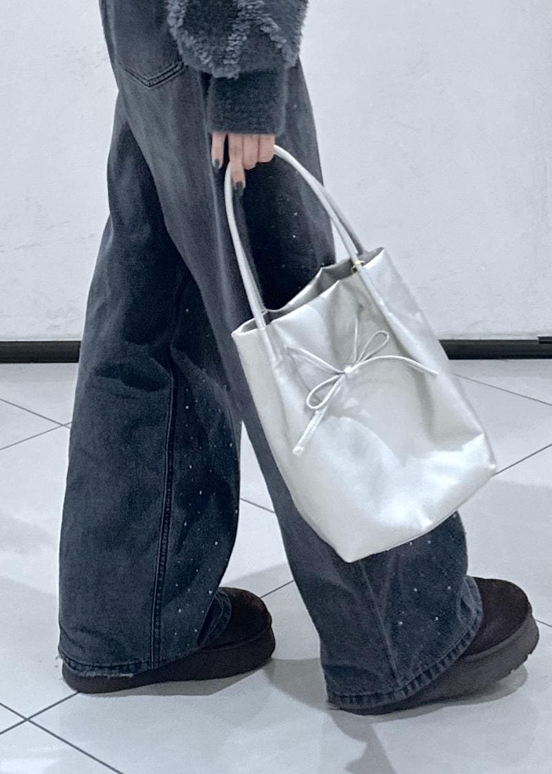洗えるバッグ リボンディティールトートバッグ/イージーケア