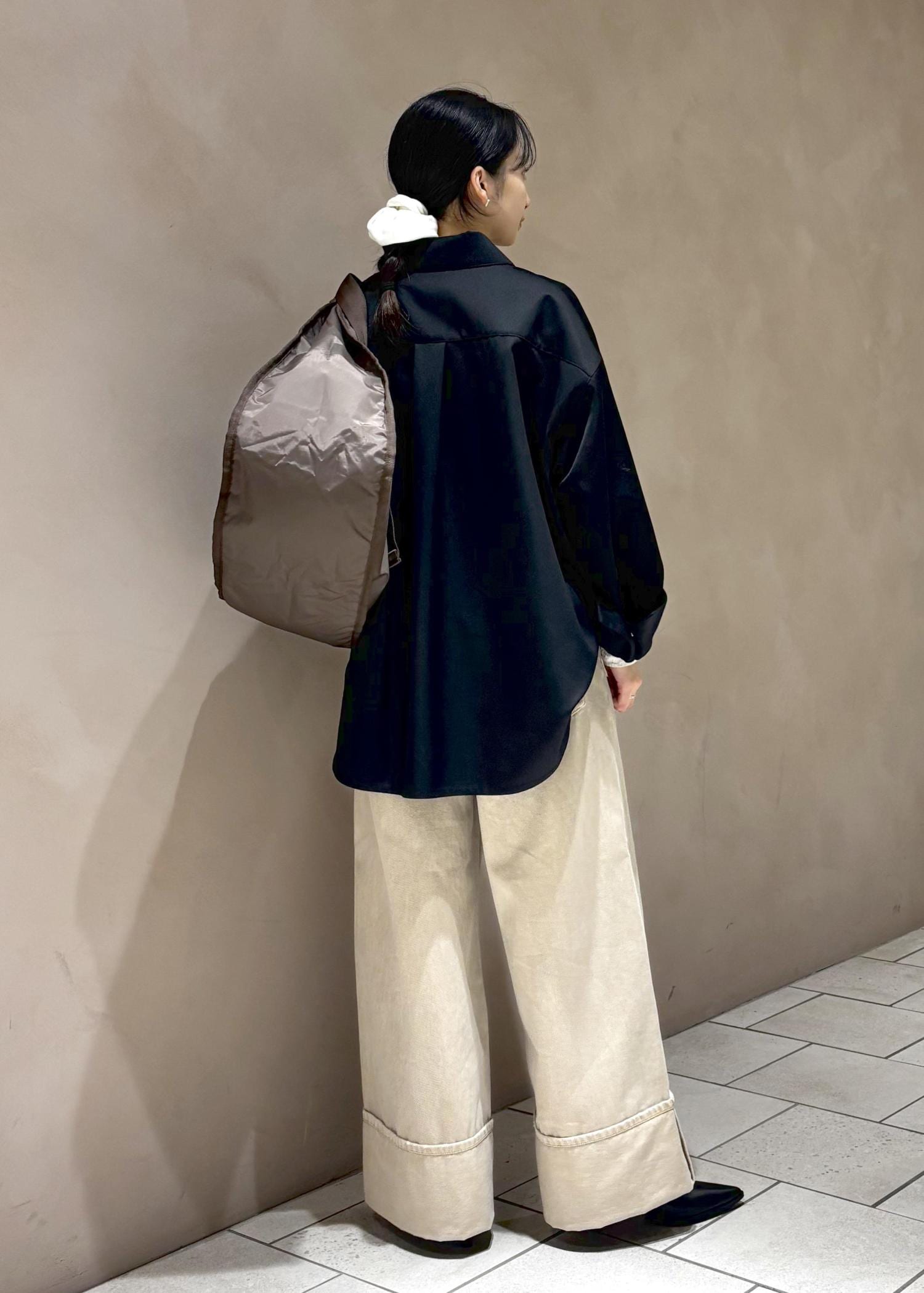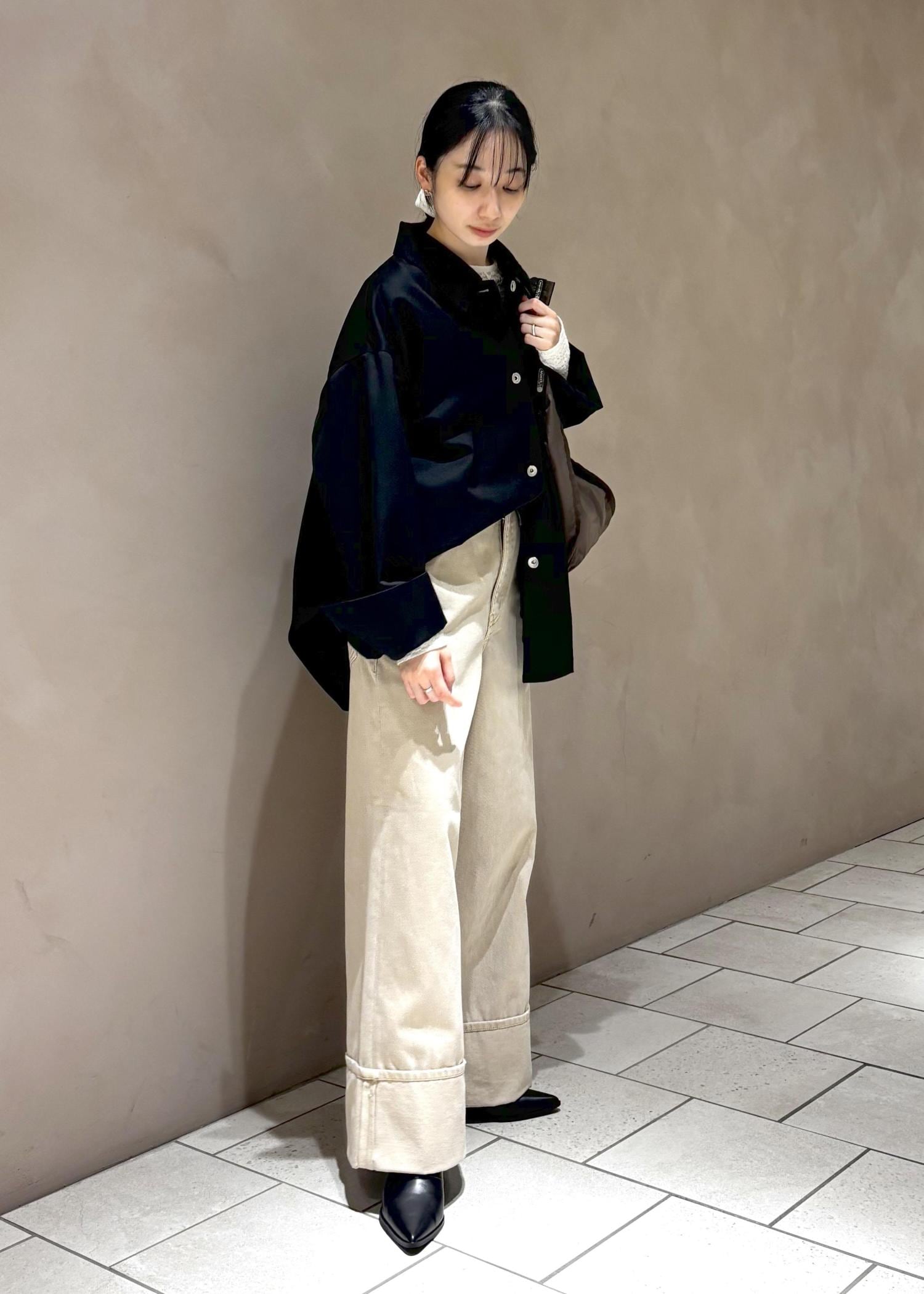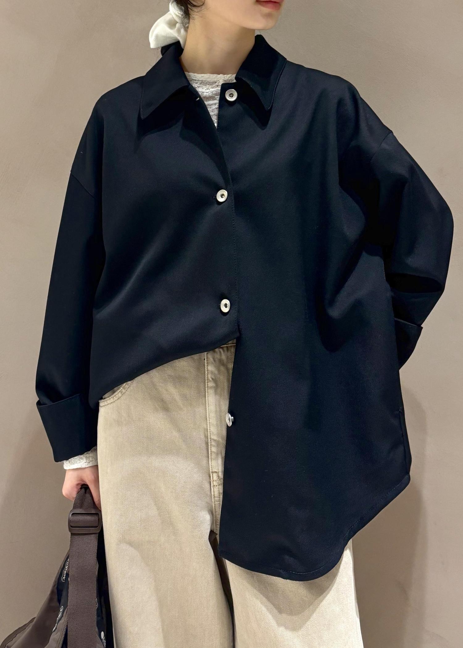 ADAM ET ROPÉ FEMMENIKKE TW DENIM SHIRT JACKETブラック / F¥26,400レビュー生地感はかなりしっかりめで、少し光沢感があるので綺麗めにもカジュアルにも合わせやすい一枚です。オーバーめのシルエットなので、レイヤードにもかわいいですがアウターとして羽織るスタイリングもおすすめです!丈感は156cmでお尻がすっぽり隠れるくらいです!