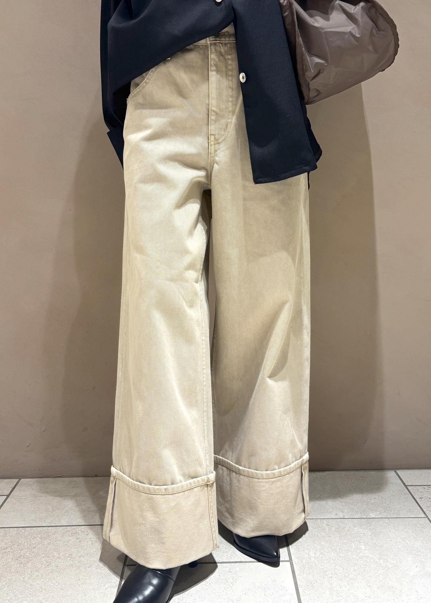ADAM ET ROPÉ FEMMEターンナップアジャストデニムベージュ / 36¥20,900レビューしっかりワイドなシルエットです!ウエストはアジャスターがついているので、ハイでもジャストでも好きなスタイルで着ることができます☺︎折り返しのデザインがポイントになってシンプルすぎないのが◎